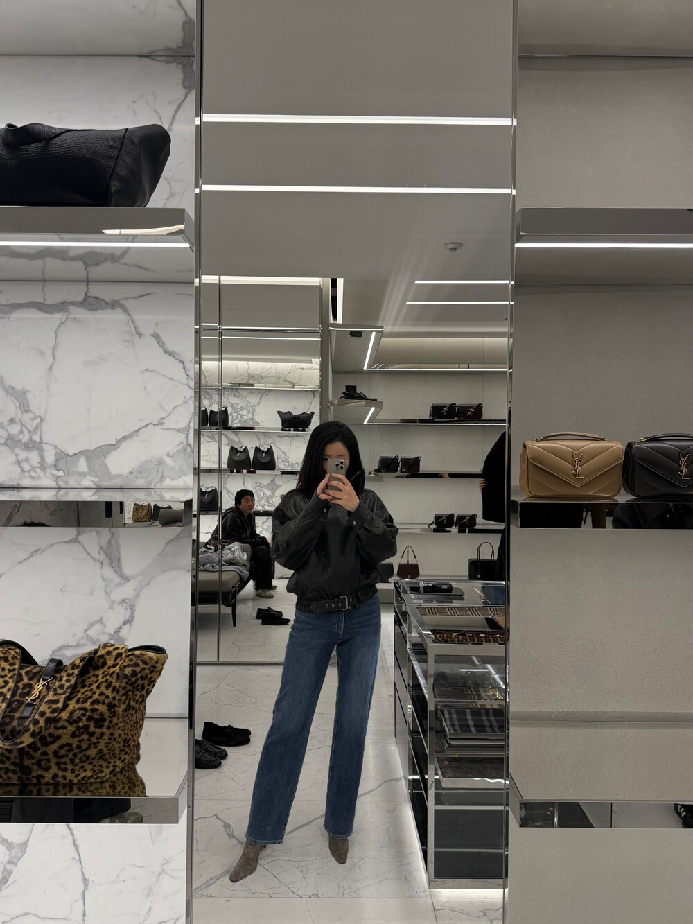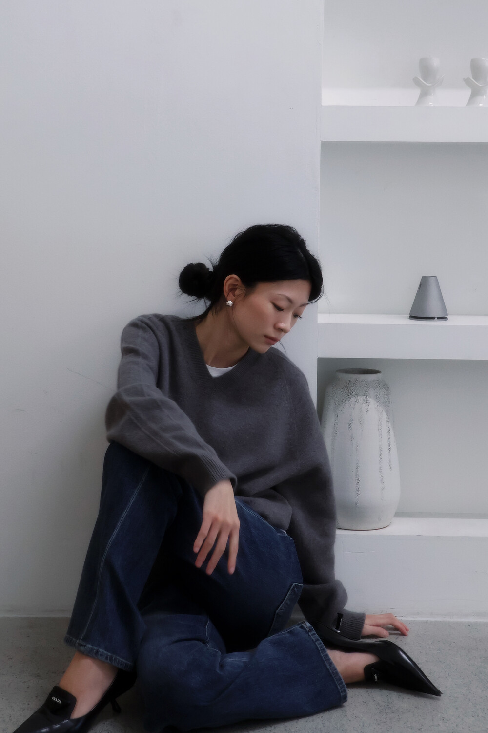 룩북 모델은 키 163cm / 44kg의 마른 체형으로, 3–4cm 힐 착용 시 XS 사이즈를 착용했습니다.