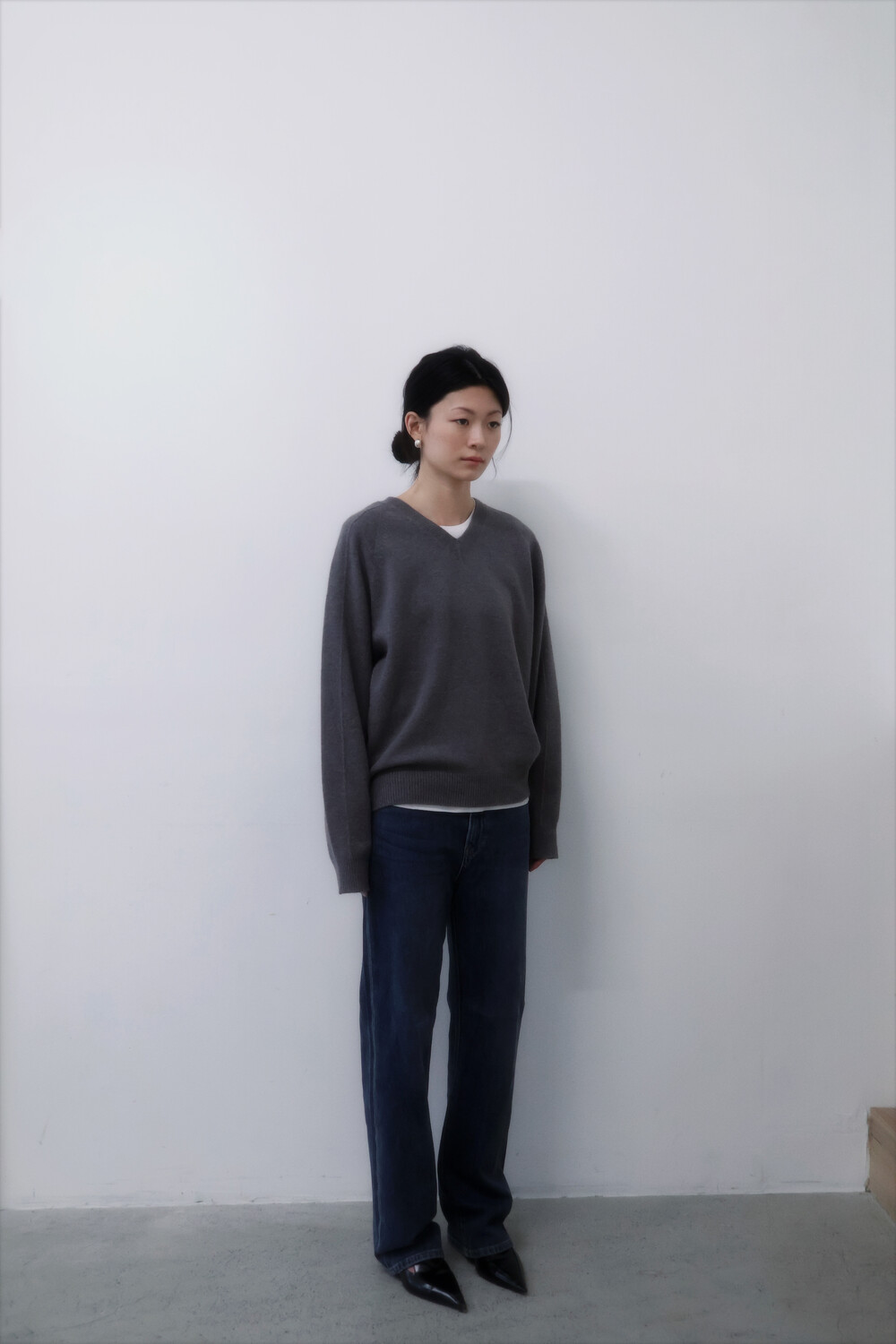 베이직하면서도 가장 활용도가 높은 실루엣이며, 겨울철 박시한 아우터 혹은 자켓과 연출하면 시크한 분위기를 연출합니다.