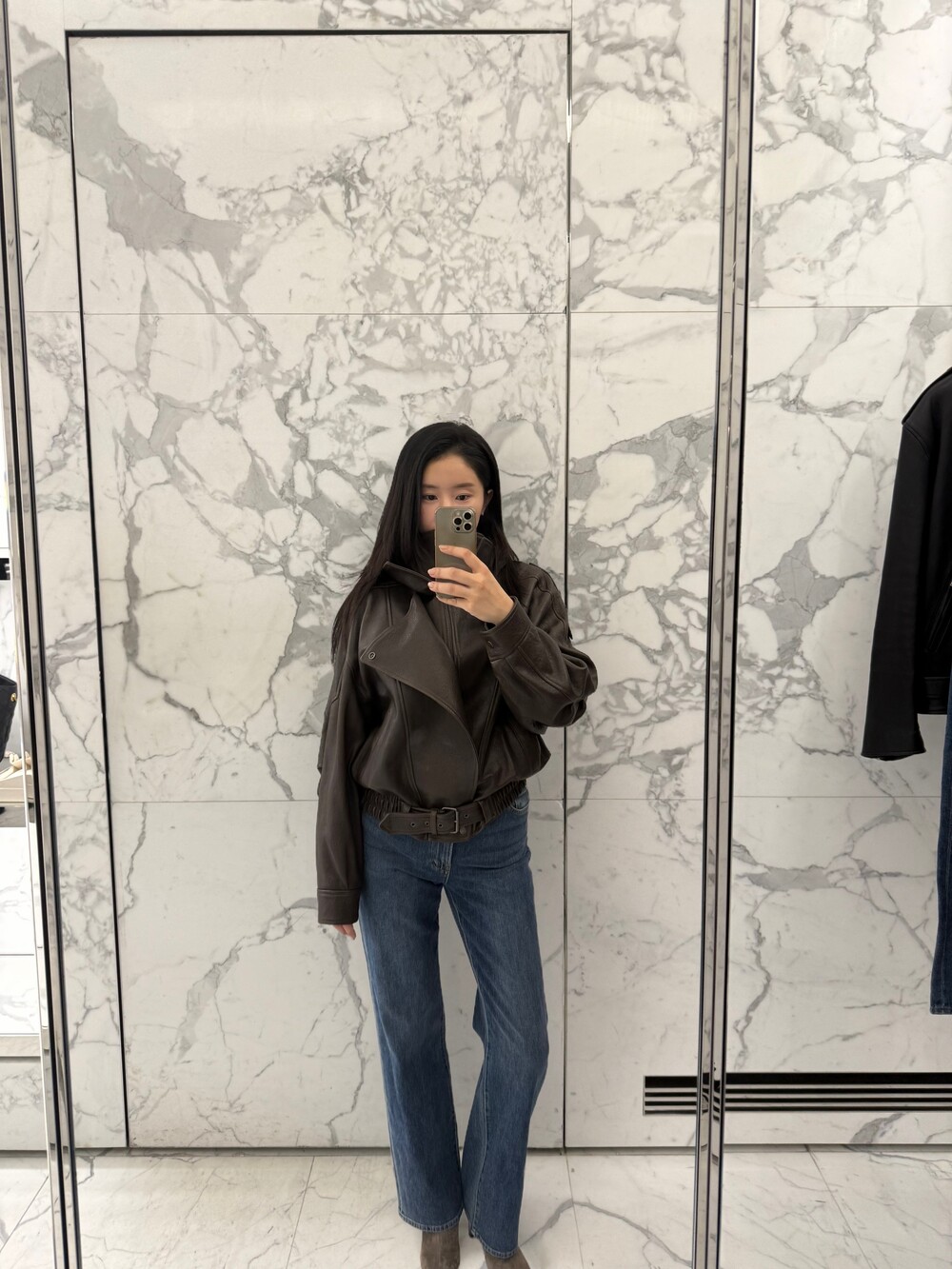 테어의 모든 데님 라인은 프리미엄 사방스판 원단으로 제작되어, 하루 종일 편안한 착용감을 자랑합니다.