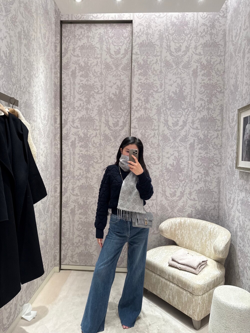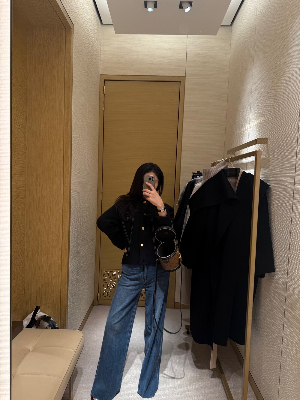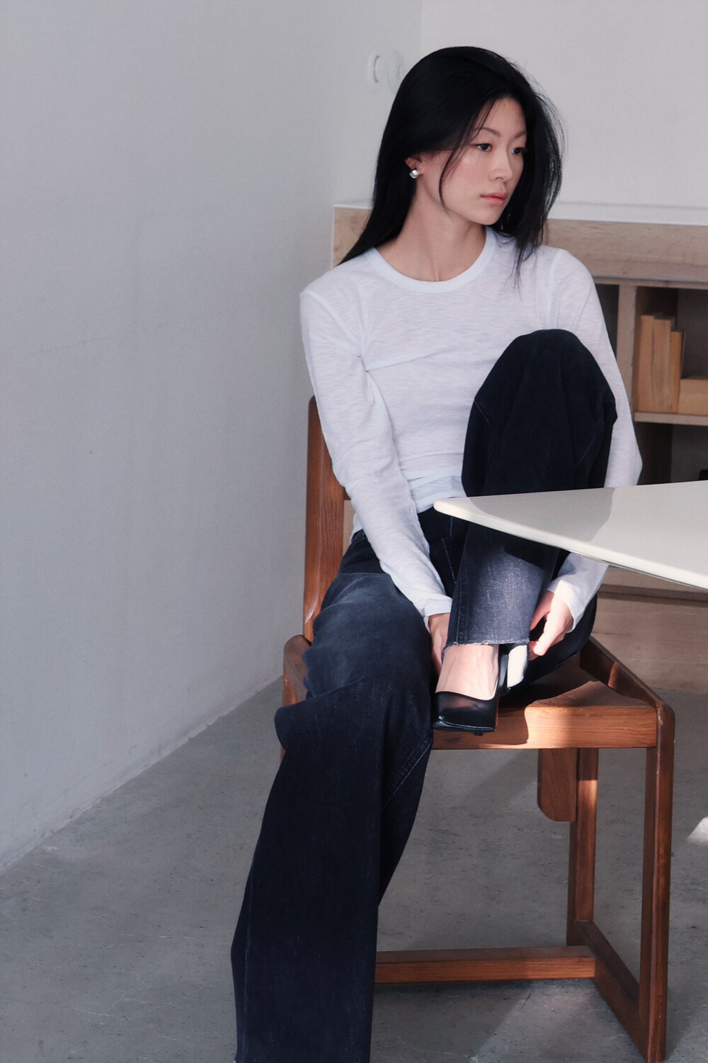 룩북 모델은 키 163cm / 44kg의 마른 체형으로, 3–4cm 힐 착용 시 XS 사이즈를 착용했습니다.