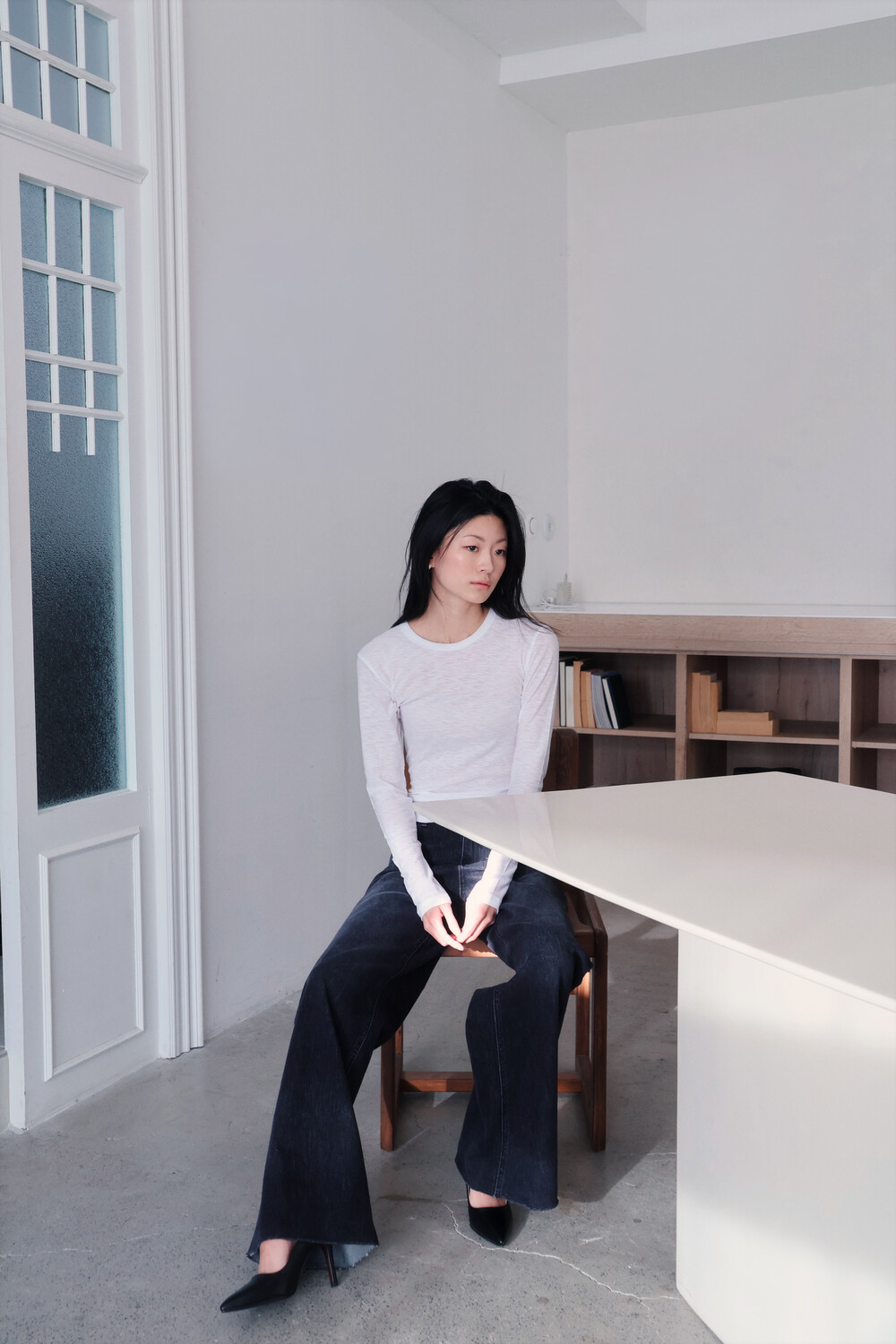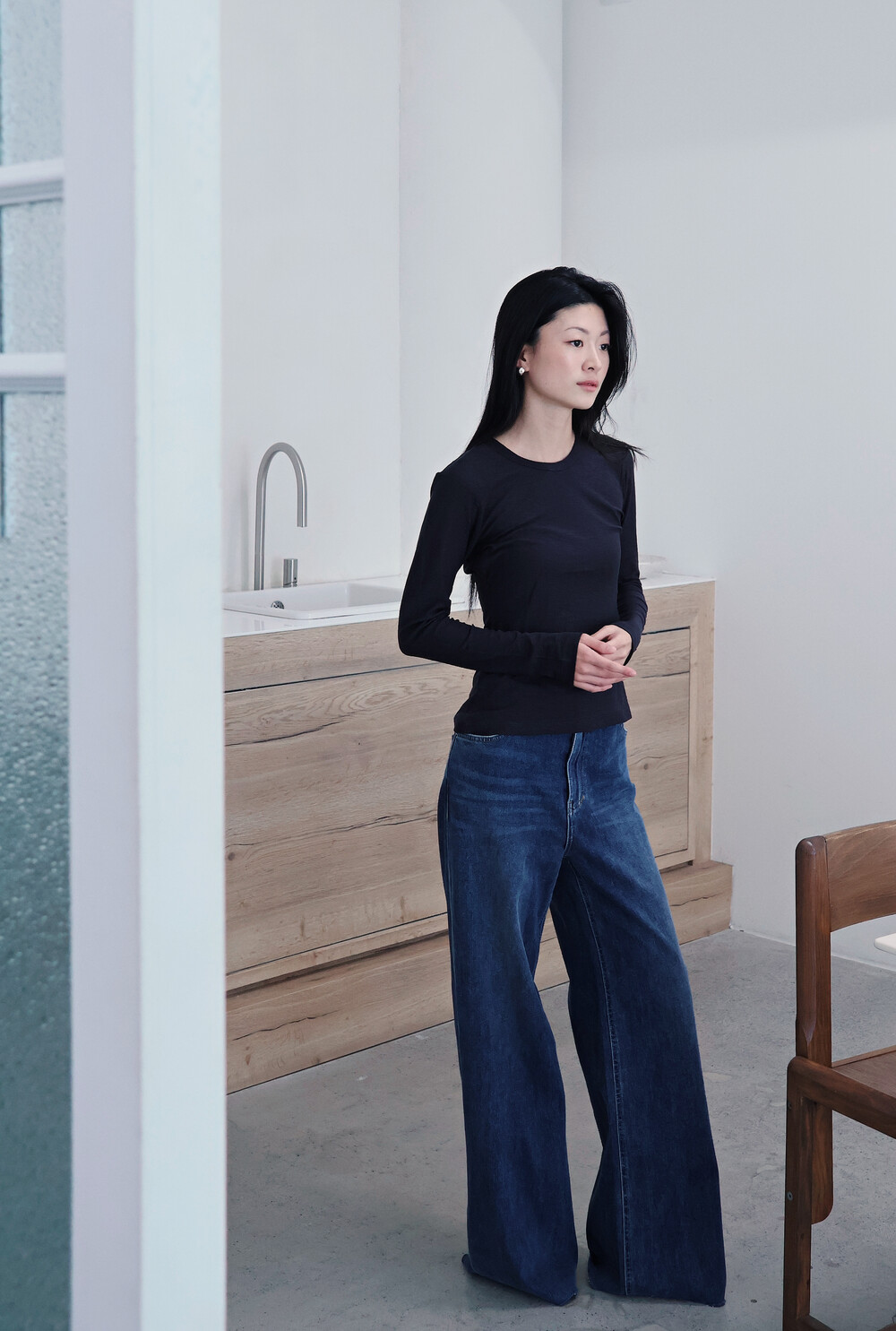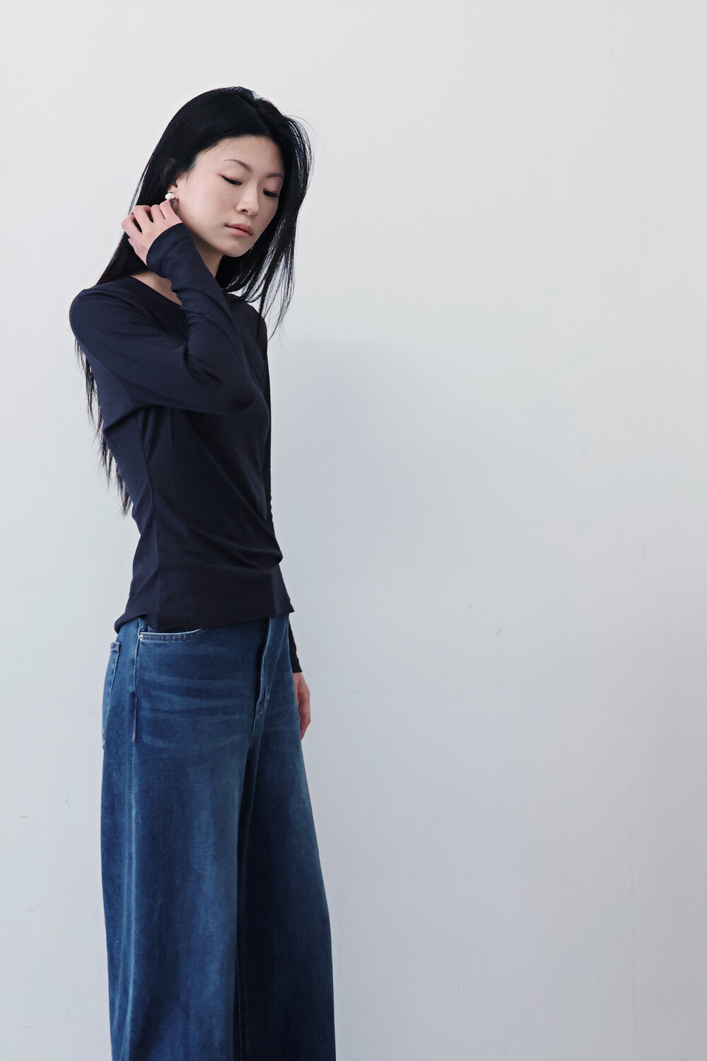 데님 특유의 무게감 대신 부드럽고 유연한 텍스처로,