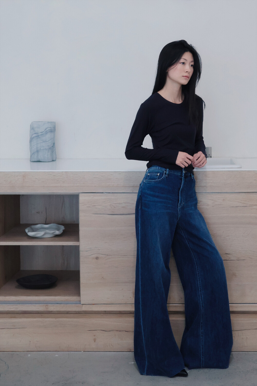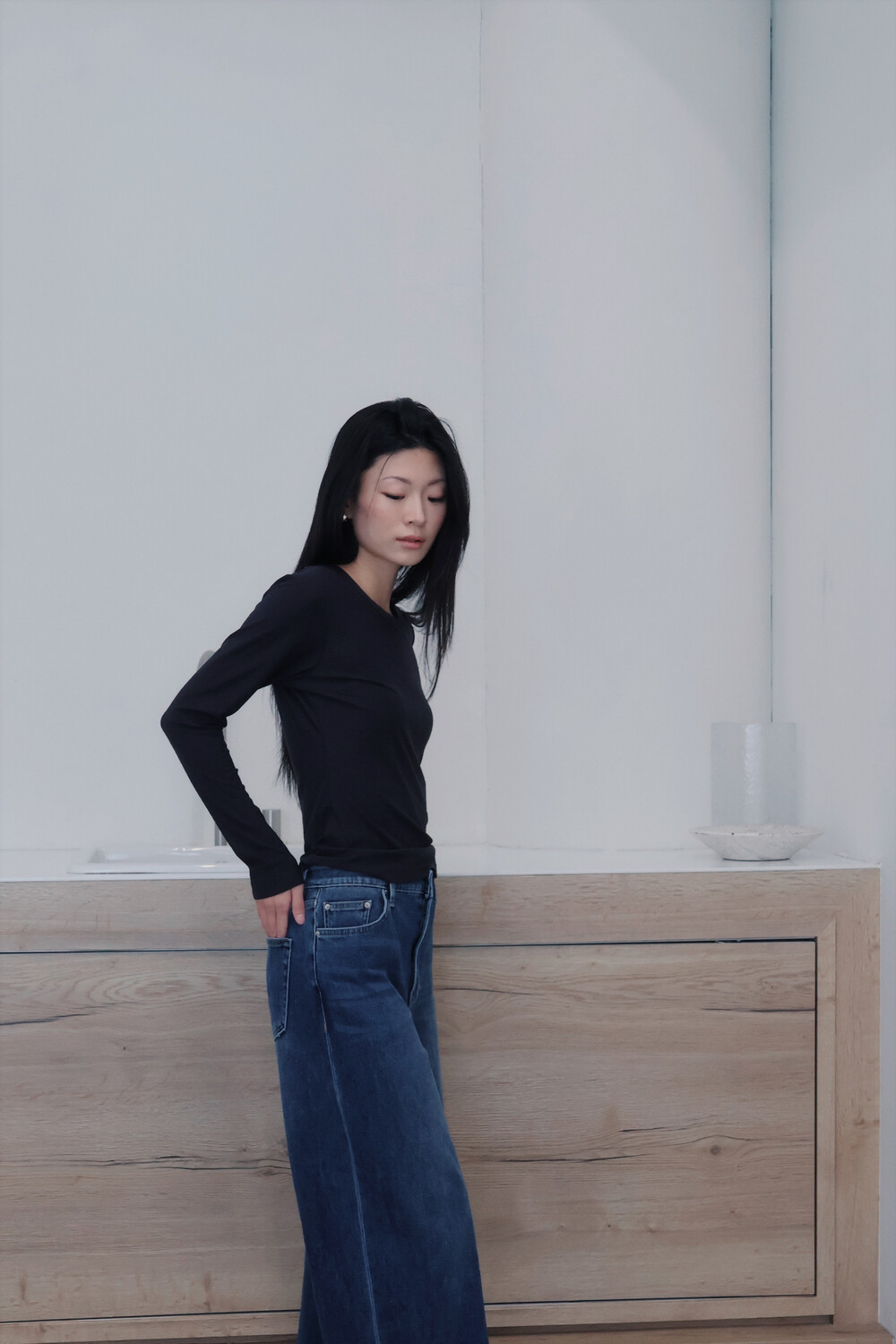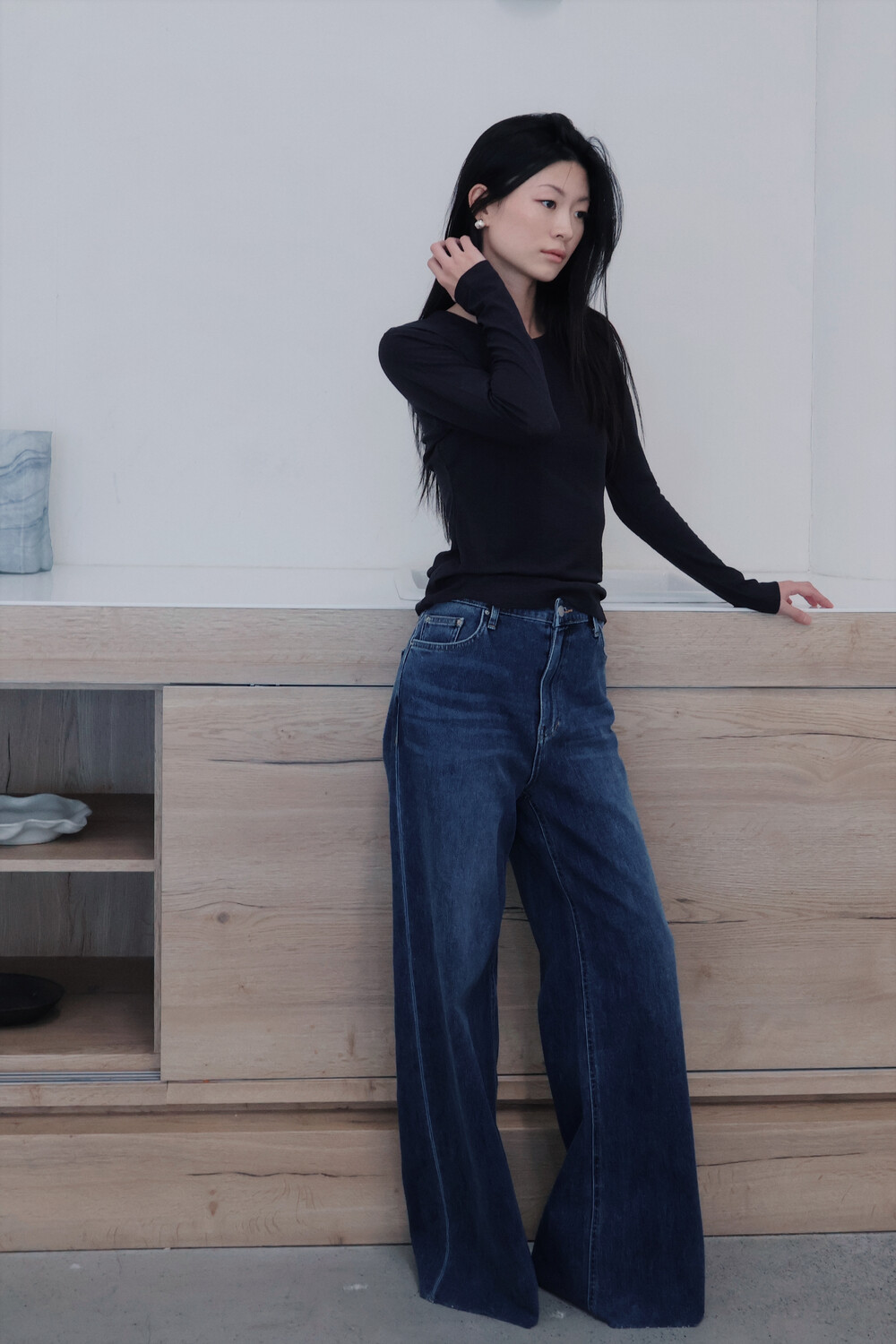 데님 특유의 무게감 대신 부드럽고 유연한 텍스처로,