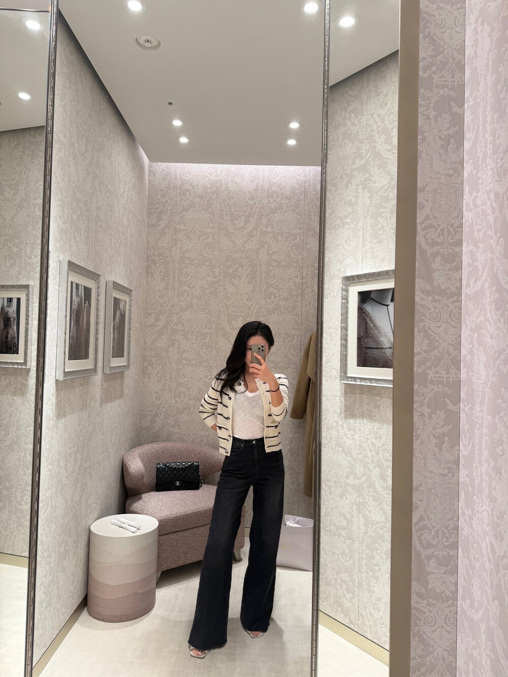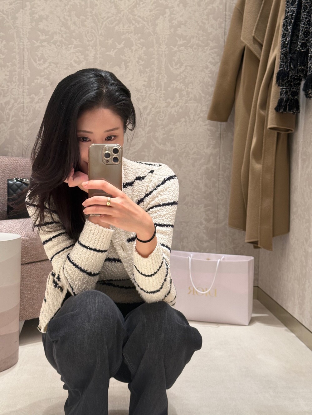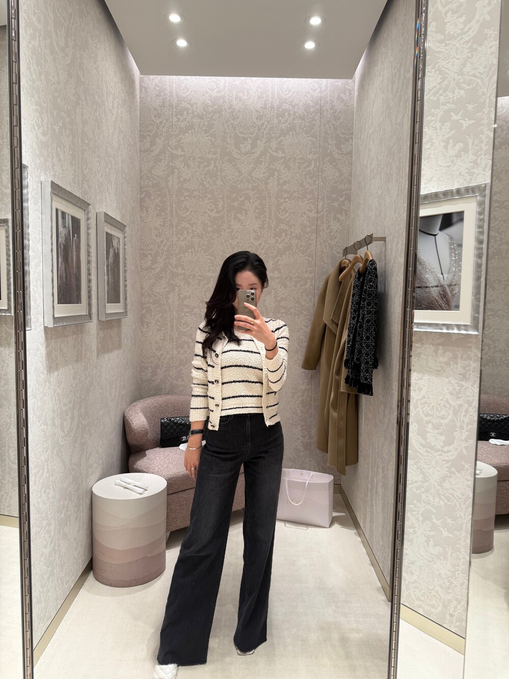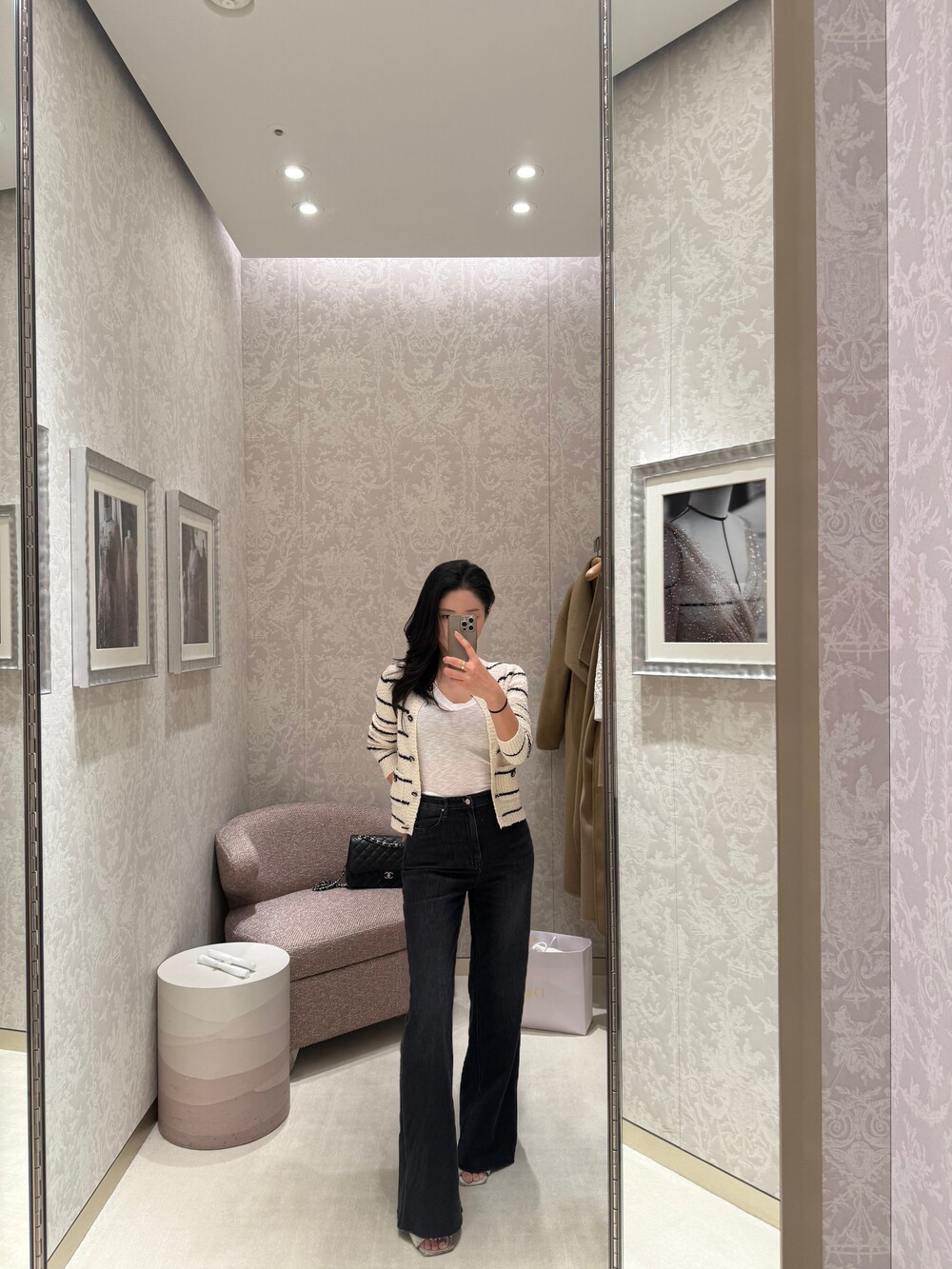 룩북 모델은 키 163cm / 44kg의 마른 체형으로, 3–4cm 힐 착용 시 XS 사이즈를 착용했습니다.