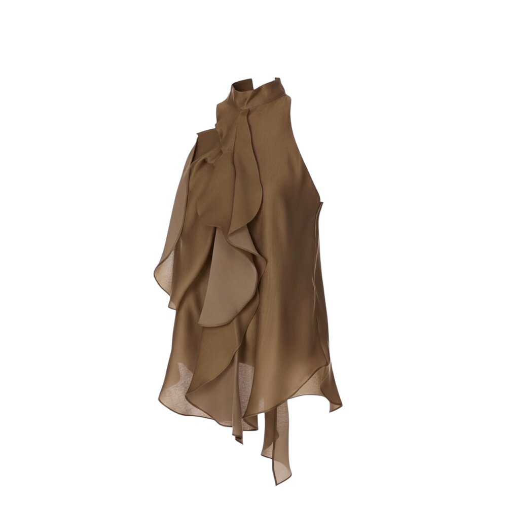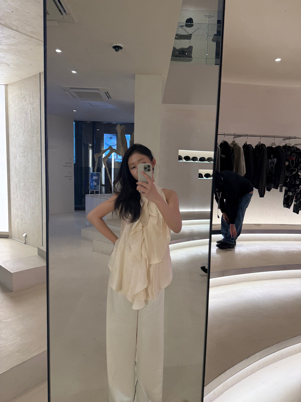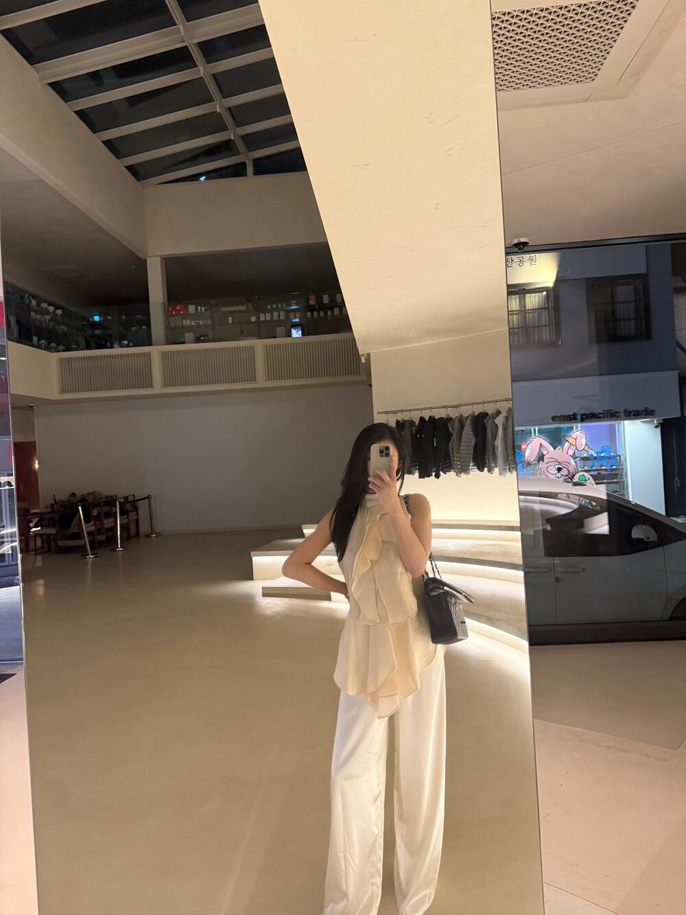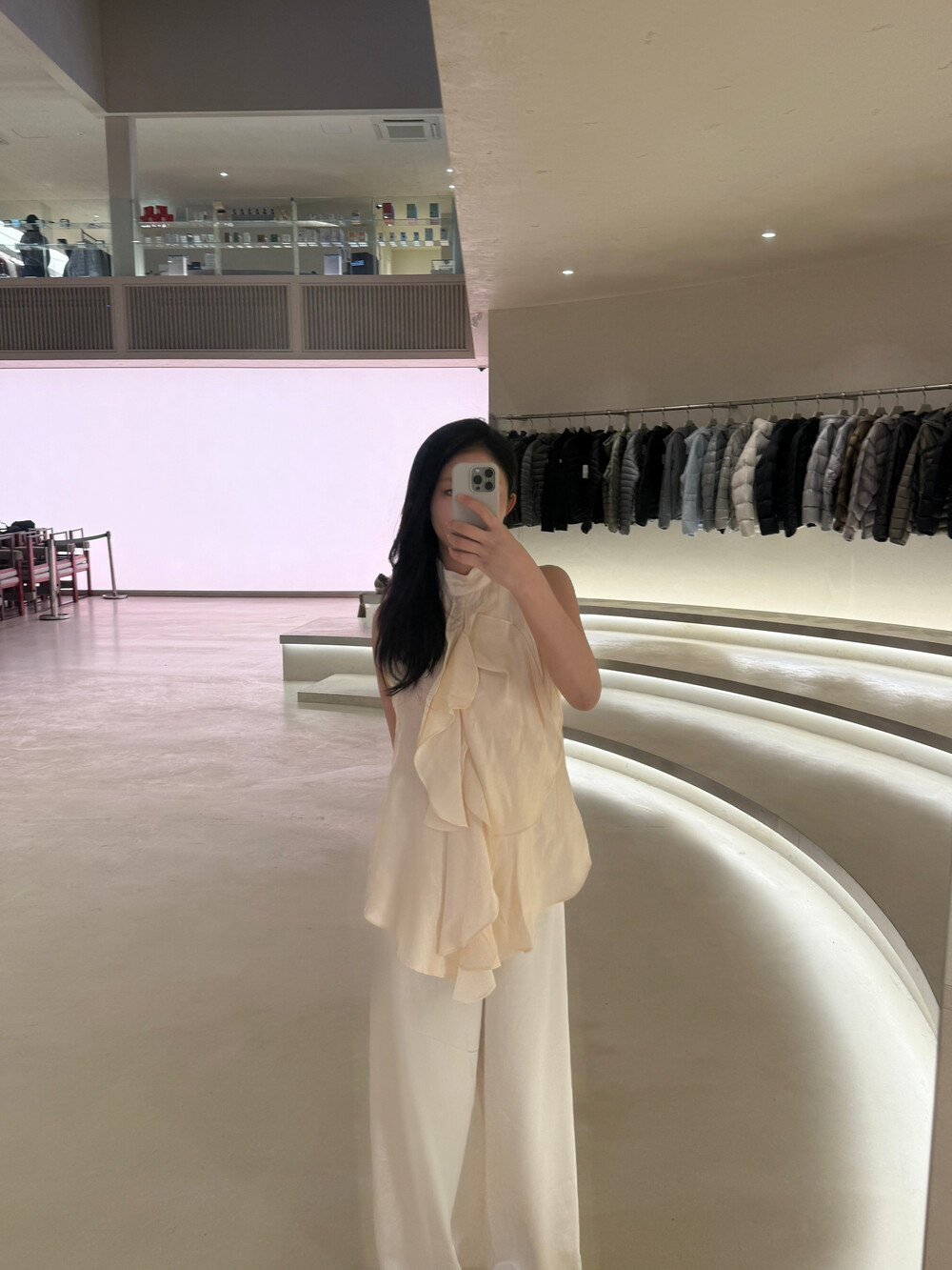 러플을 ‘장식’으로 쓰기보다, 원단의 흐름과 결을 살려 구조적으로 설계하여