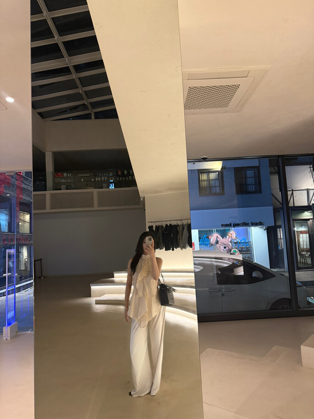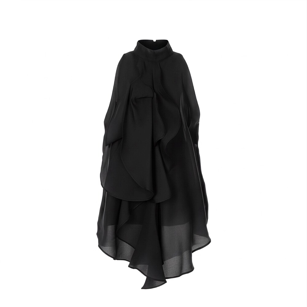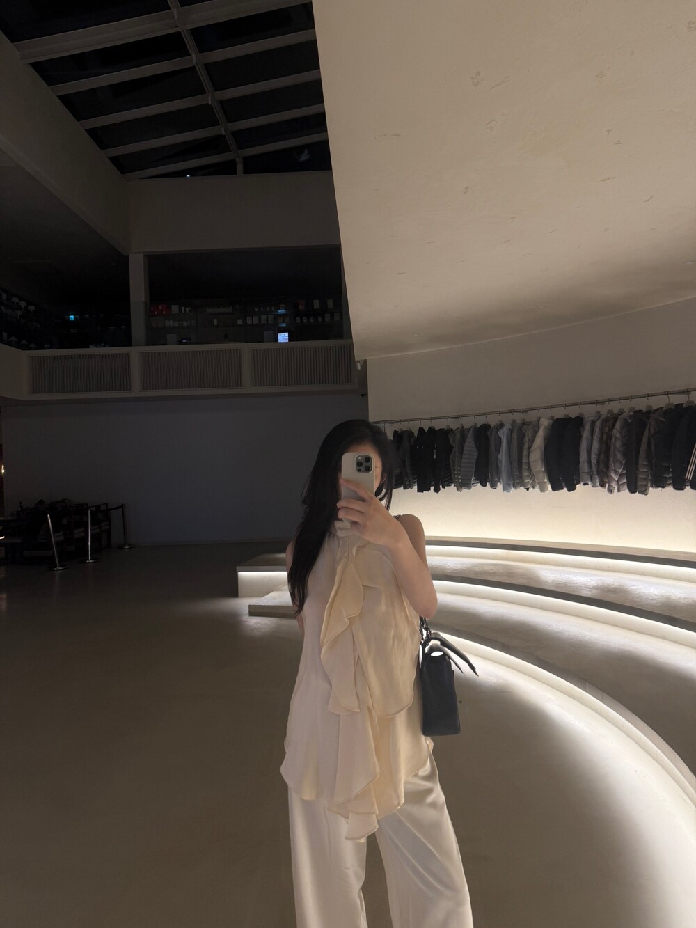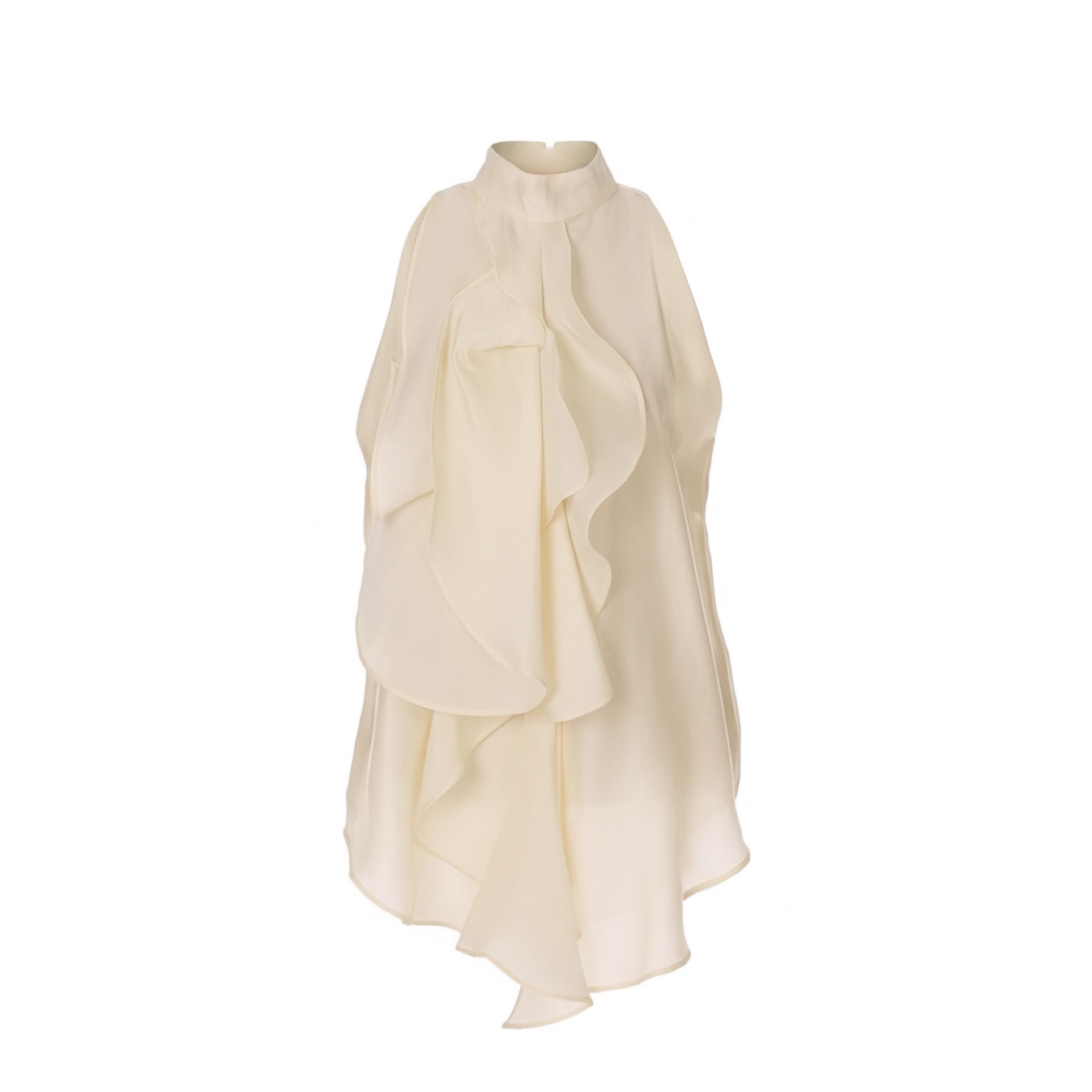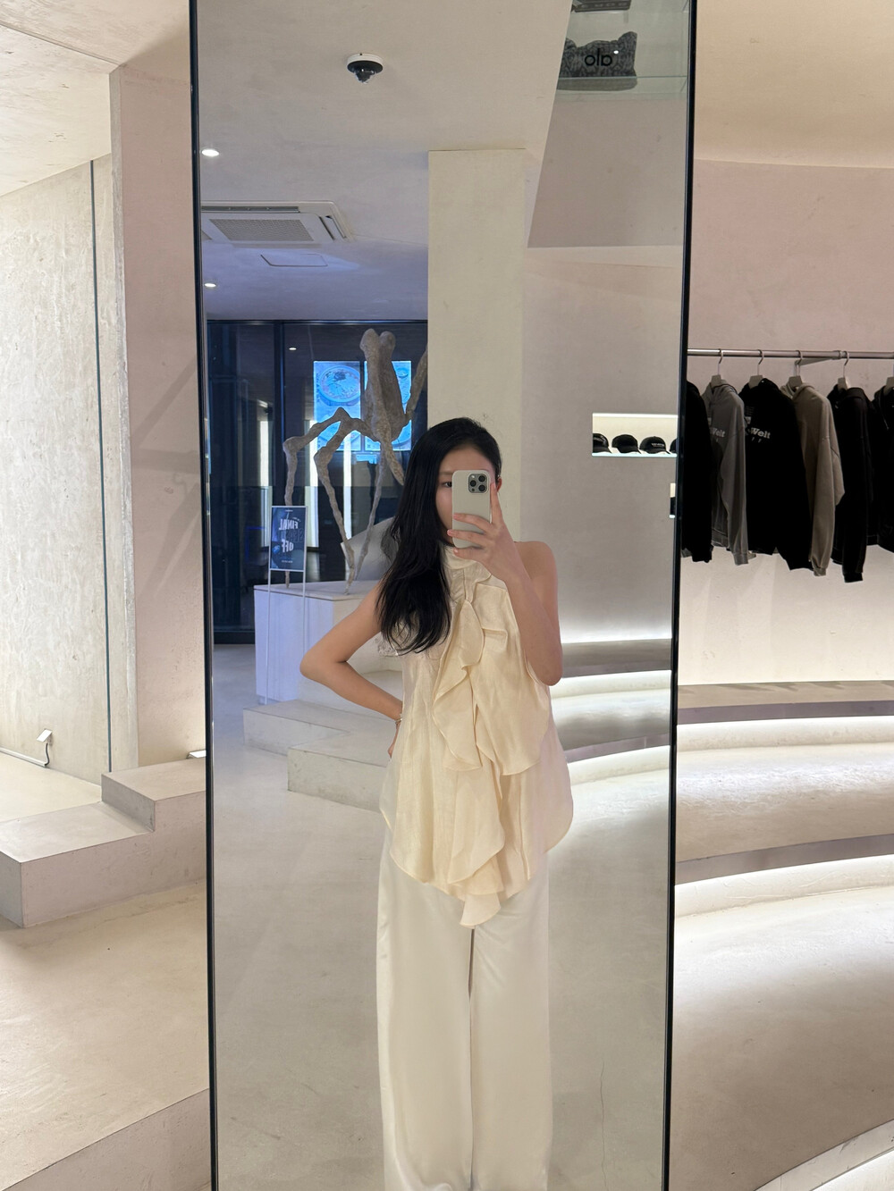 가볍게 흘러내리면서도 형태를 잡아주는 힘이 있어러플 디테일이 쉽게 무너지지 않고 고급스럽게 유지됩니다.