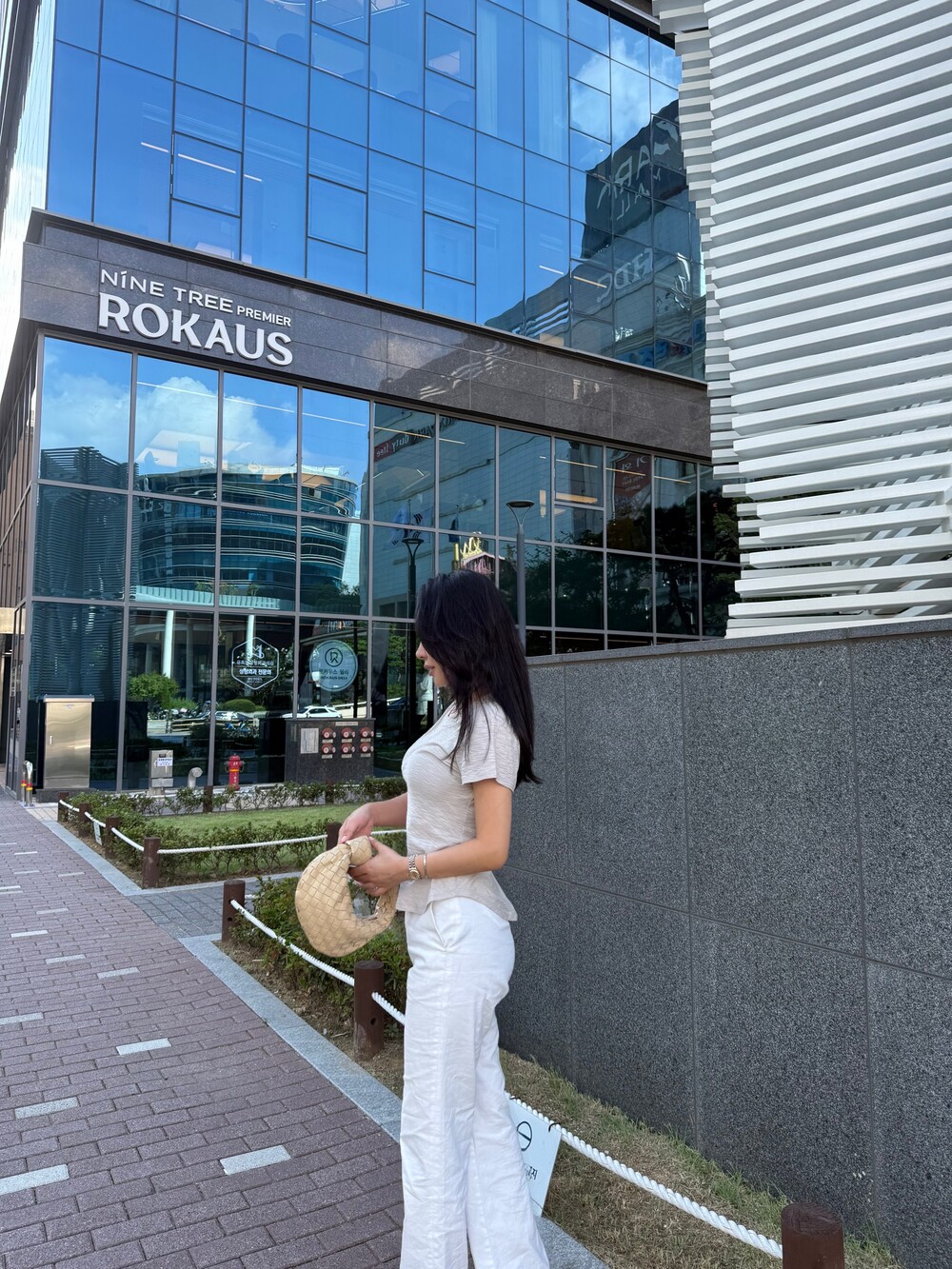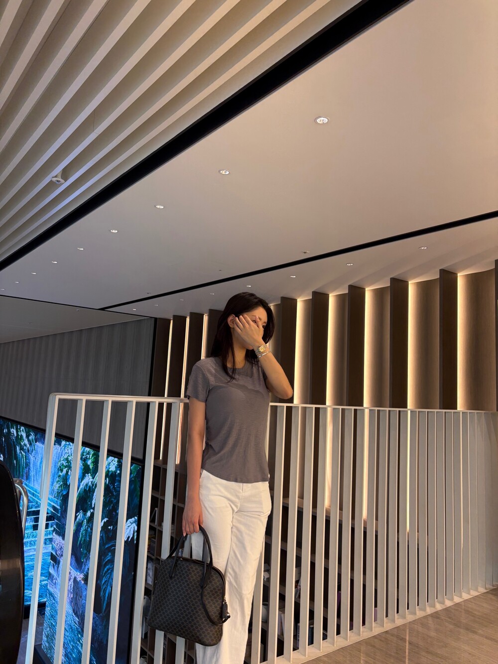 깔끔하게 정돈된 라운드넥 라인은 쇄골과 목선을 은은하게 드러내고,