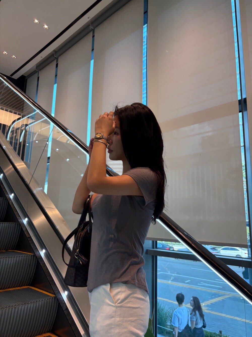 승모근을 부각시키지 않아 여성스러운 분위기를 더합니다.