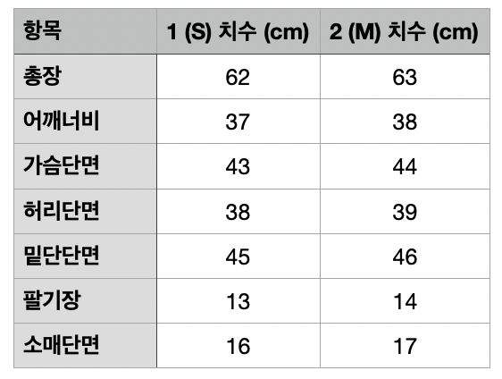사이즈 가이드는 하기 참조 부탁드립니다.
