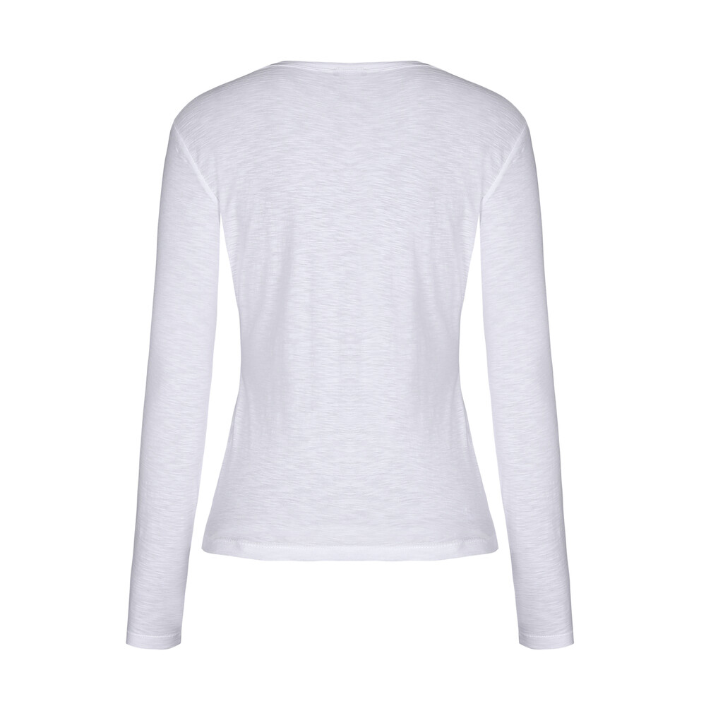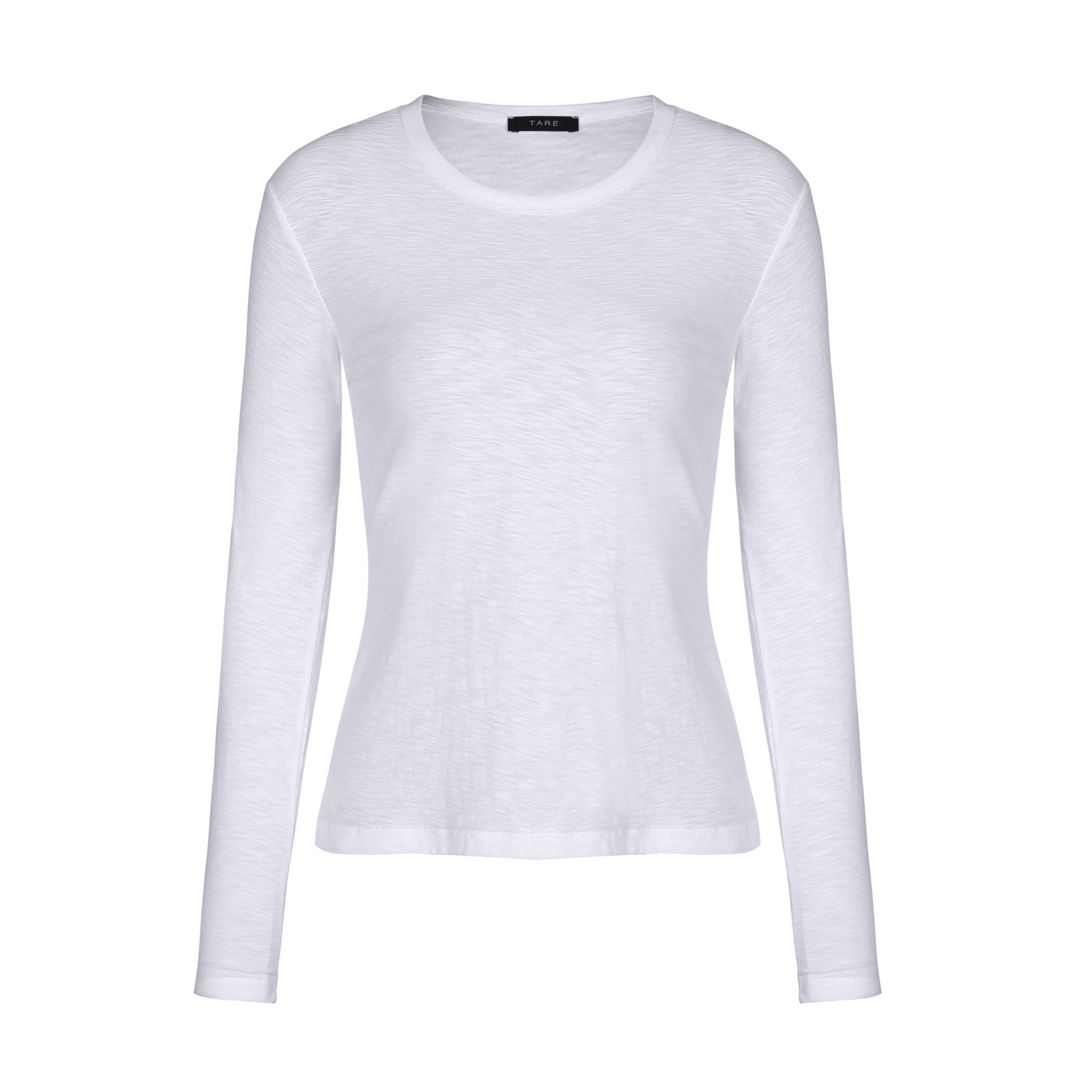 기본 라운드 넥이지만 한층 더 페미닌한 실루엣을 자연스럽게 드러냅니다.