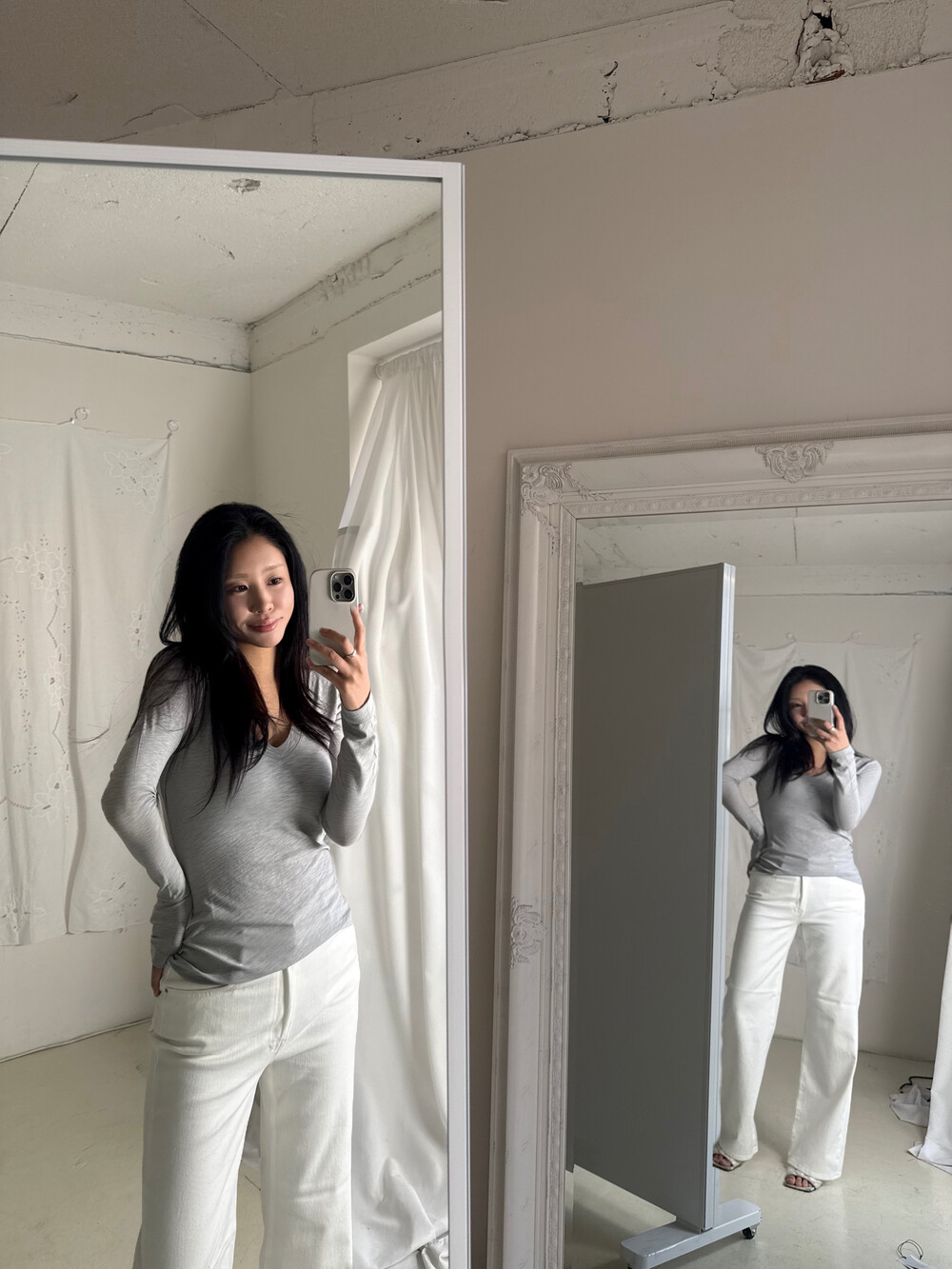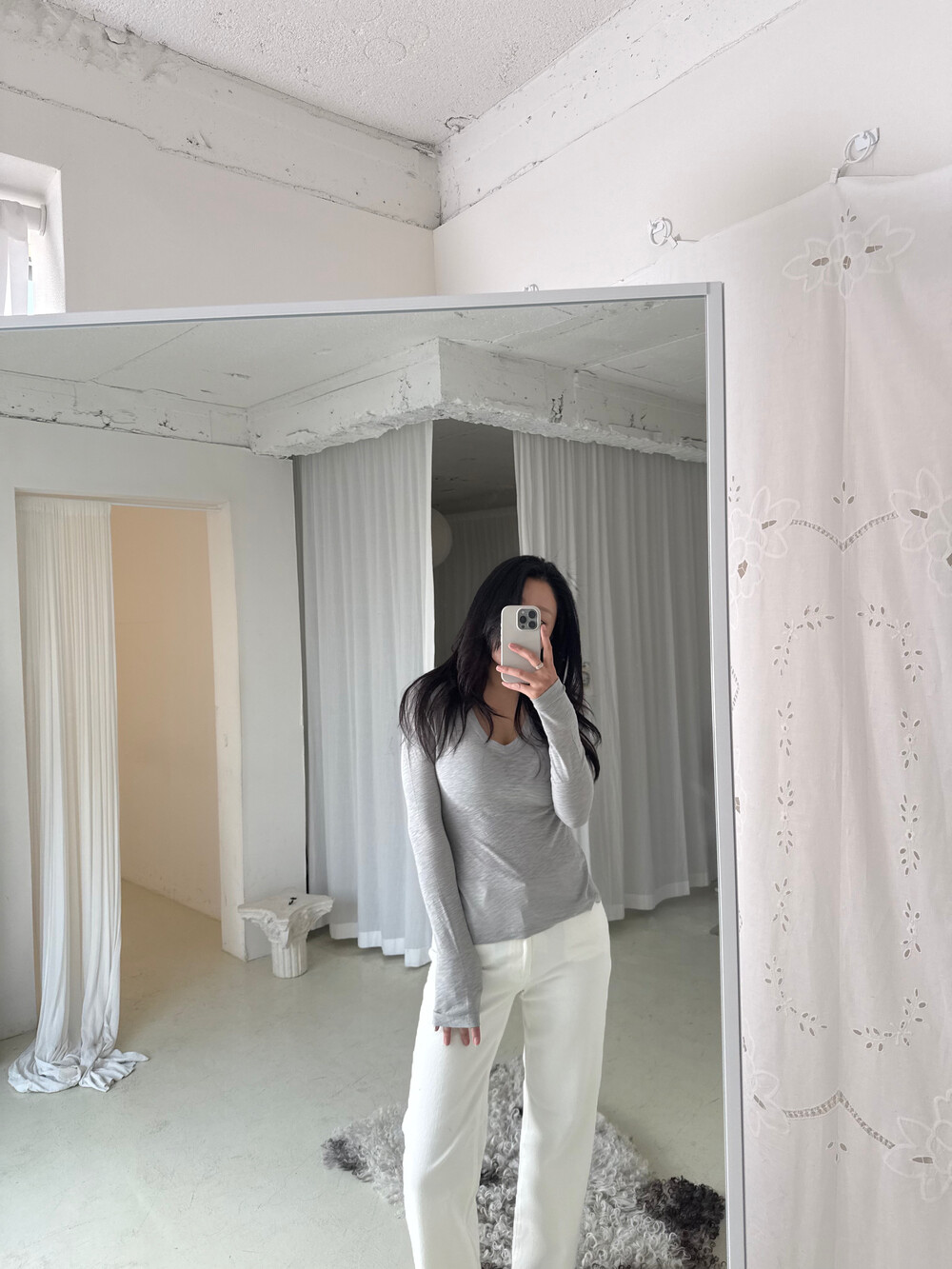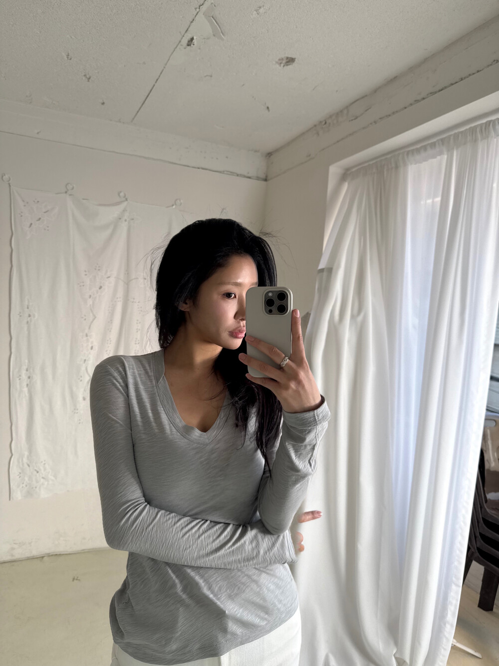 탁한 회색이 아닌,빛을 머금은 맑은 그레이로 균형 잡힌 부드러움으로그레이를 가장 여성스럽게 풀어낸 컬러입니다.