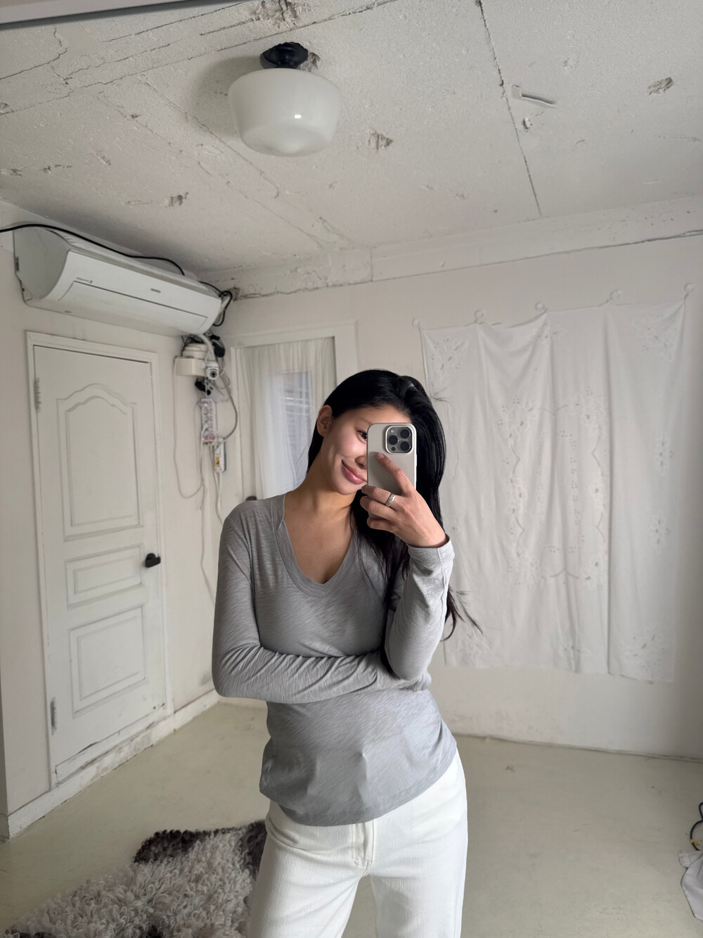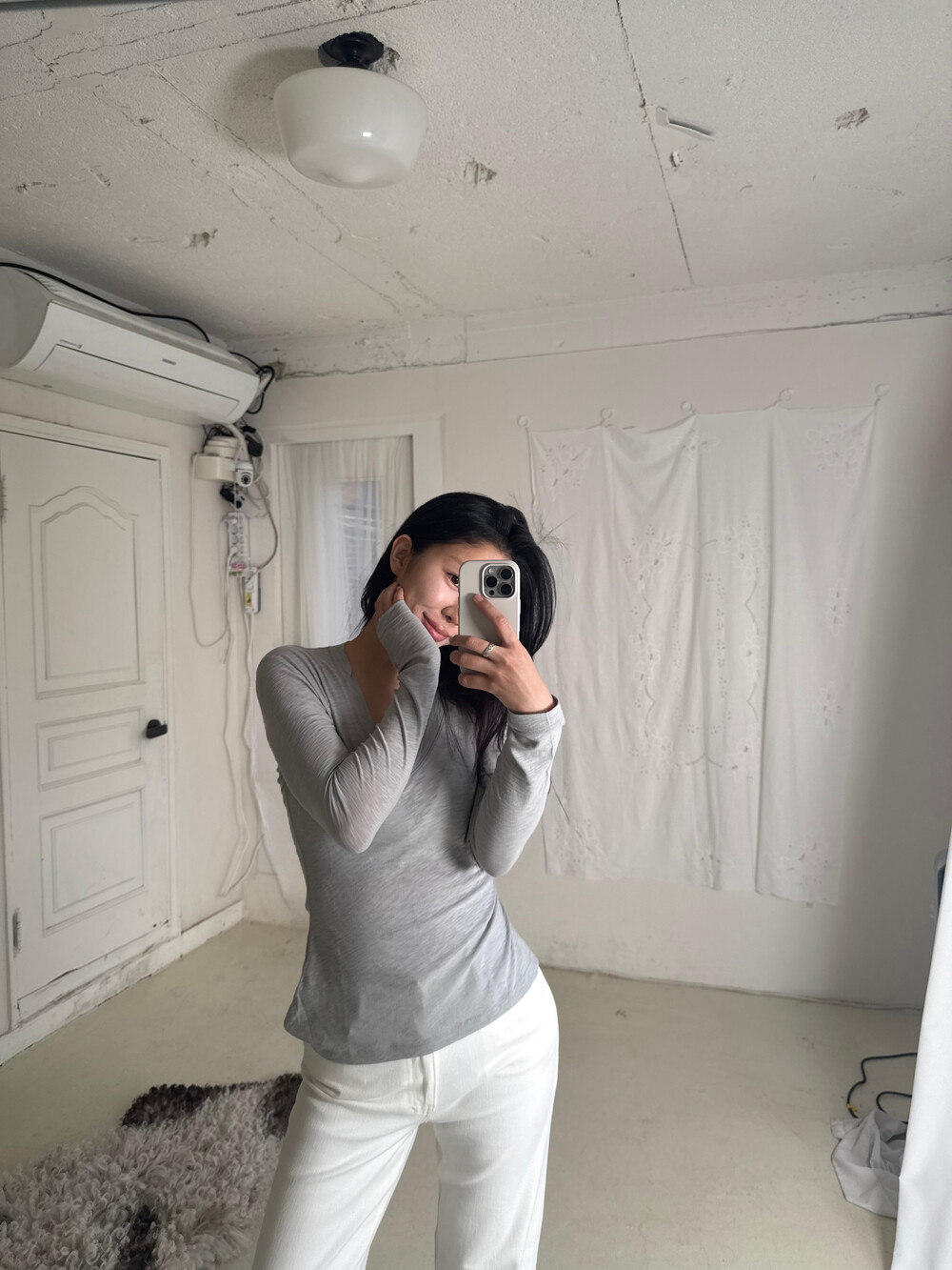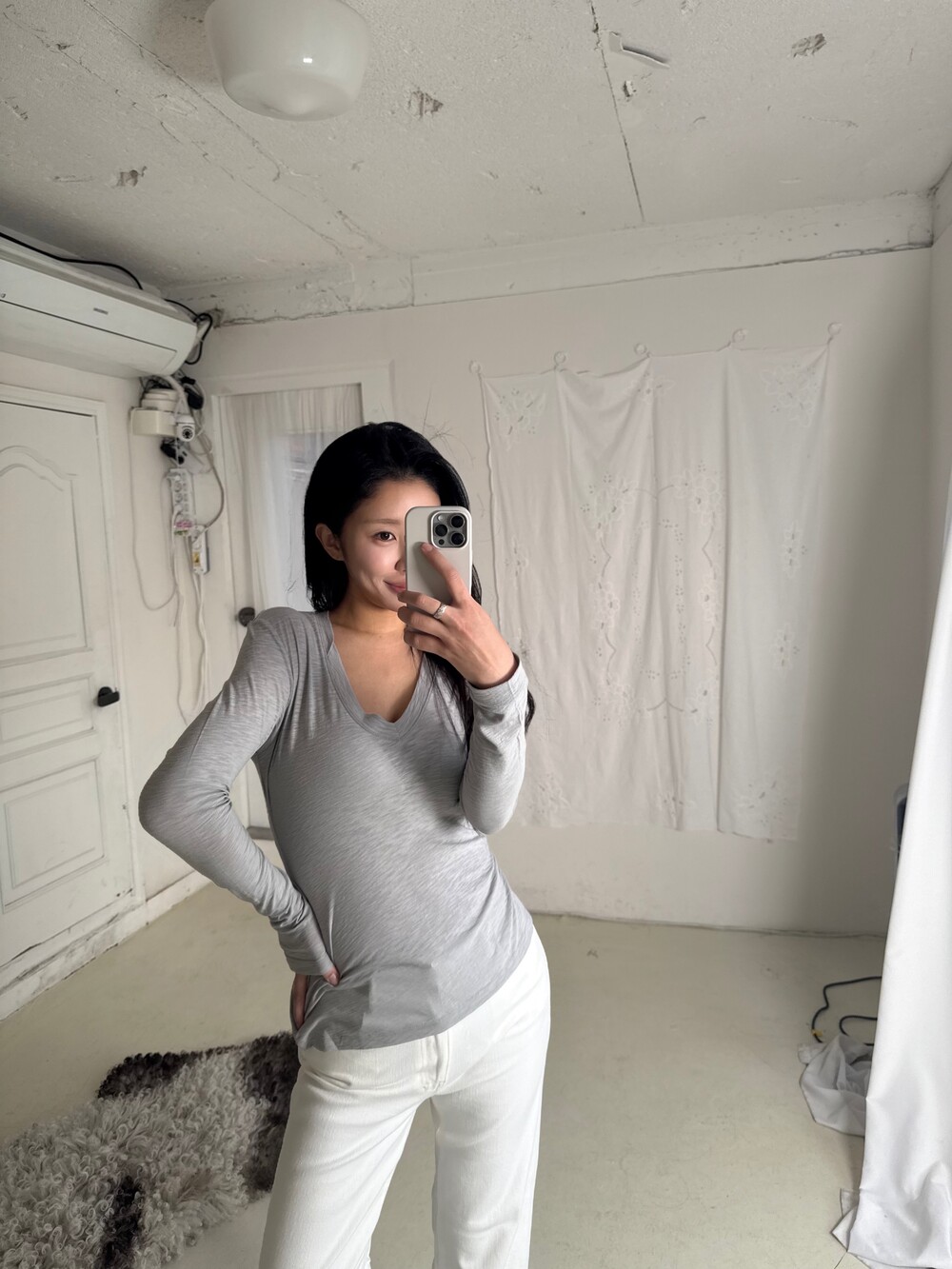 탁한 회색이 아닌,빛을 머금은 맑은 그레이로 균형 잡힌 부드러움으로그레이를 가장 여성스럽게 풀어낸 컬러입니다.