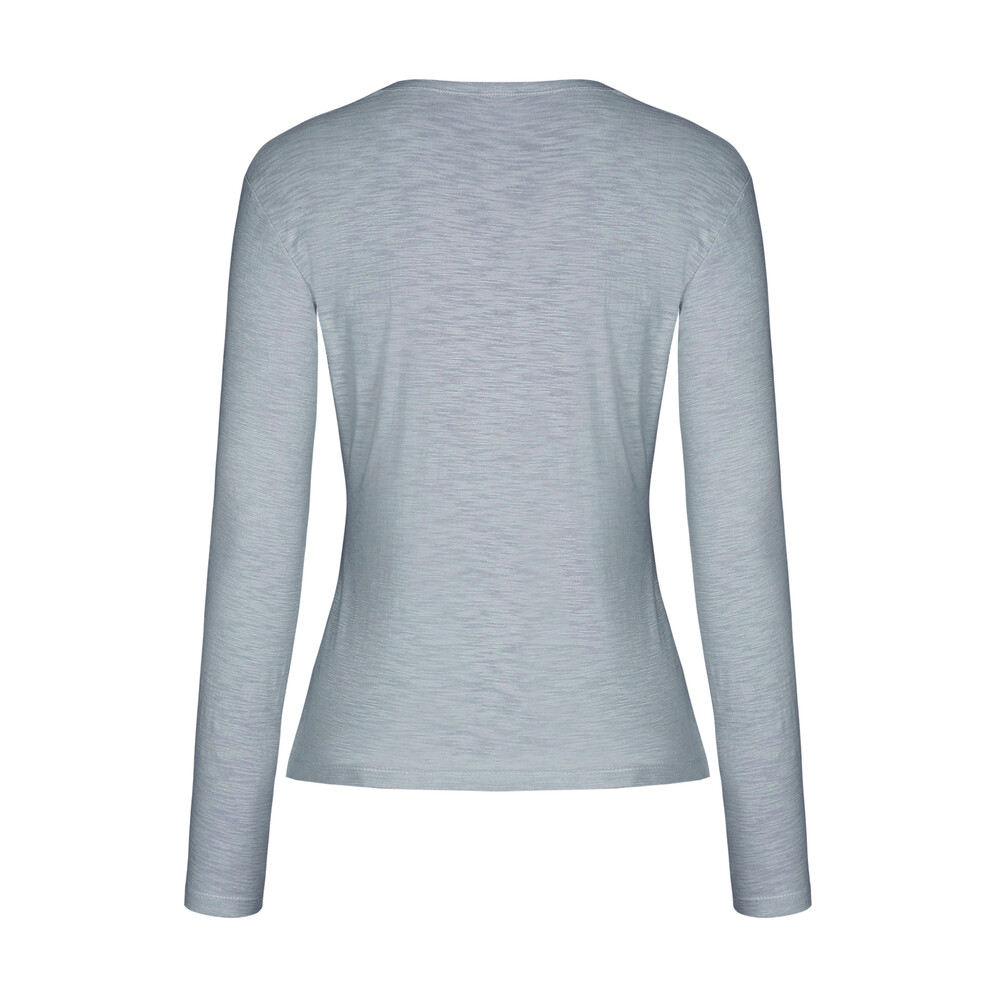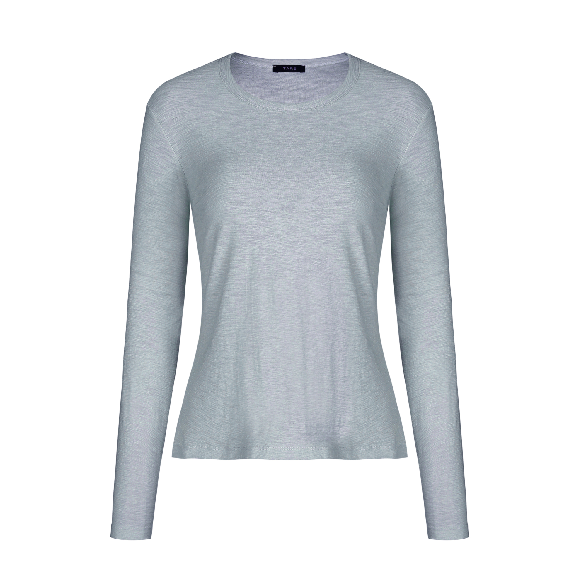 기본 라운드 넥이지만 한층 더 페미닌한 실루엣을 자연스럽게 드러냅니다.