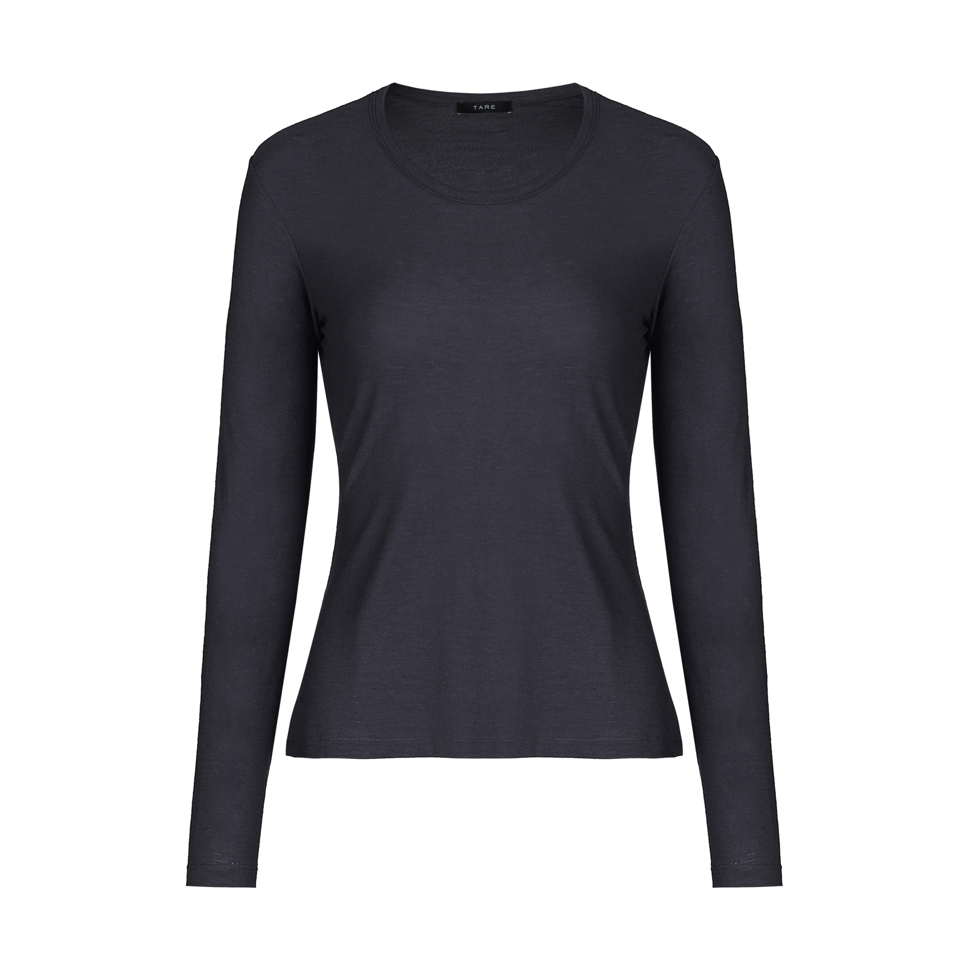 기본 라운드 넥이지만 한층 더 페미닌한 실루엣을 자연스럽게 드러냅니다.
