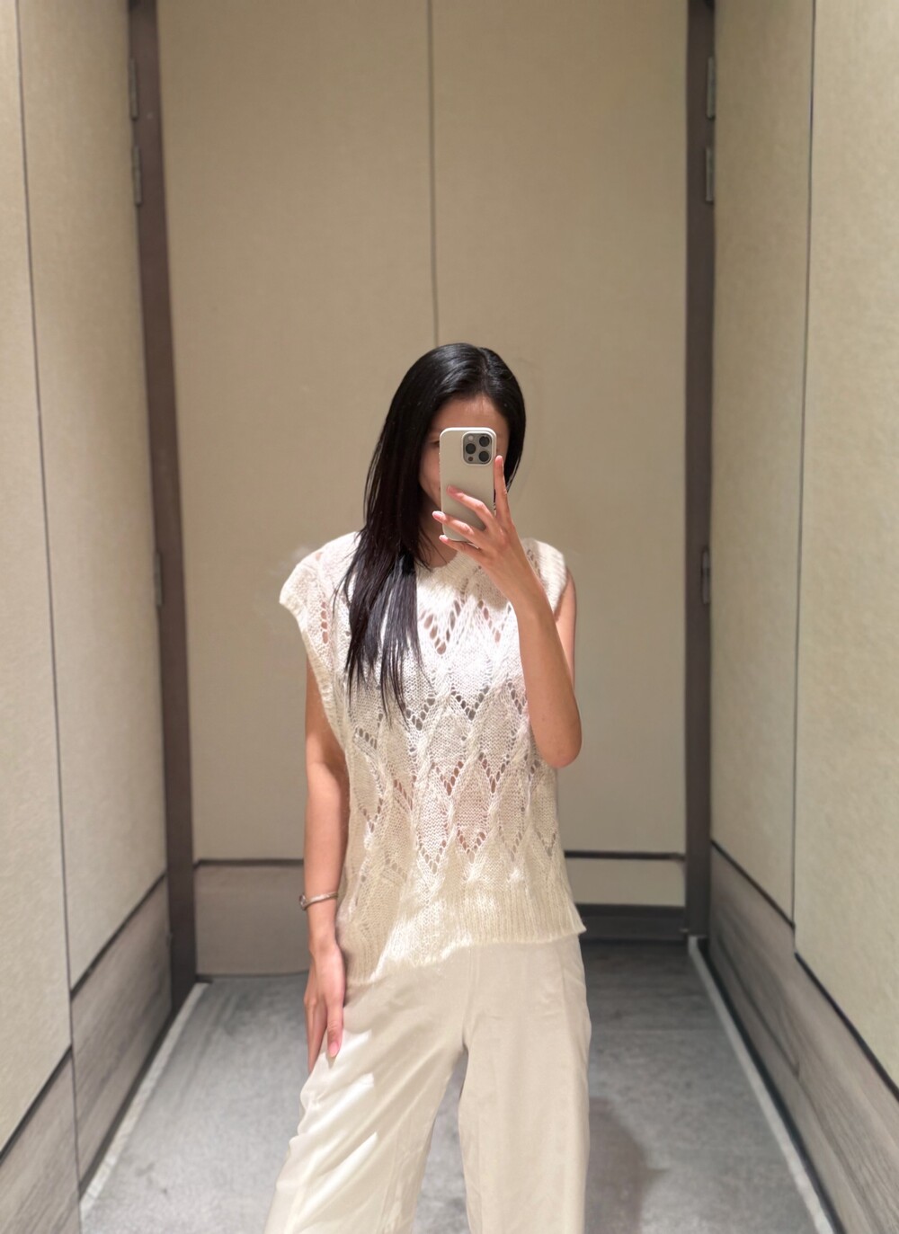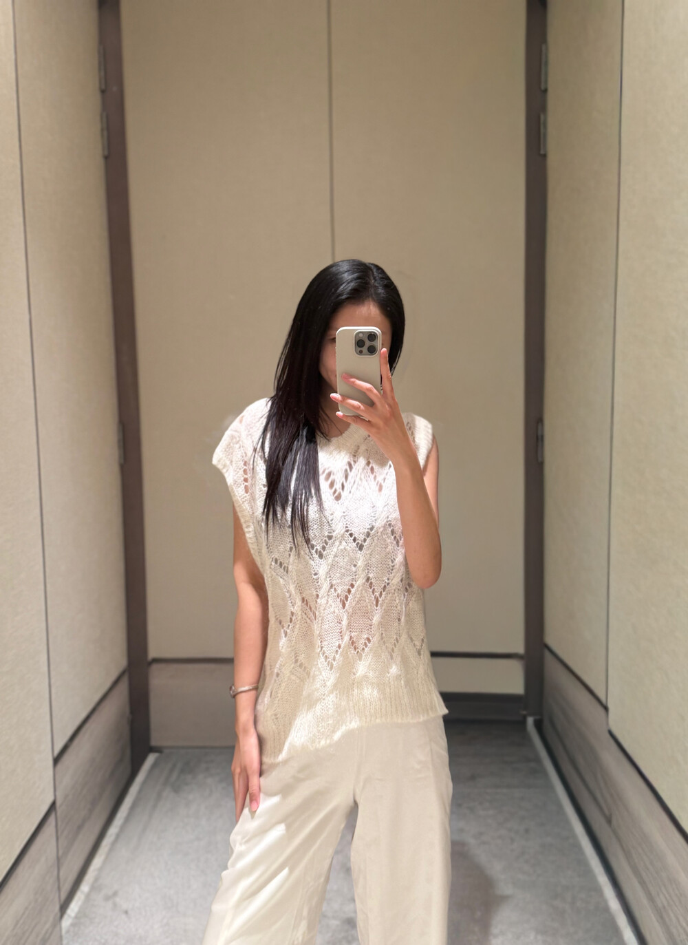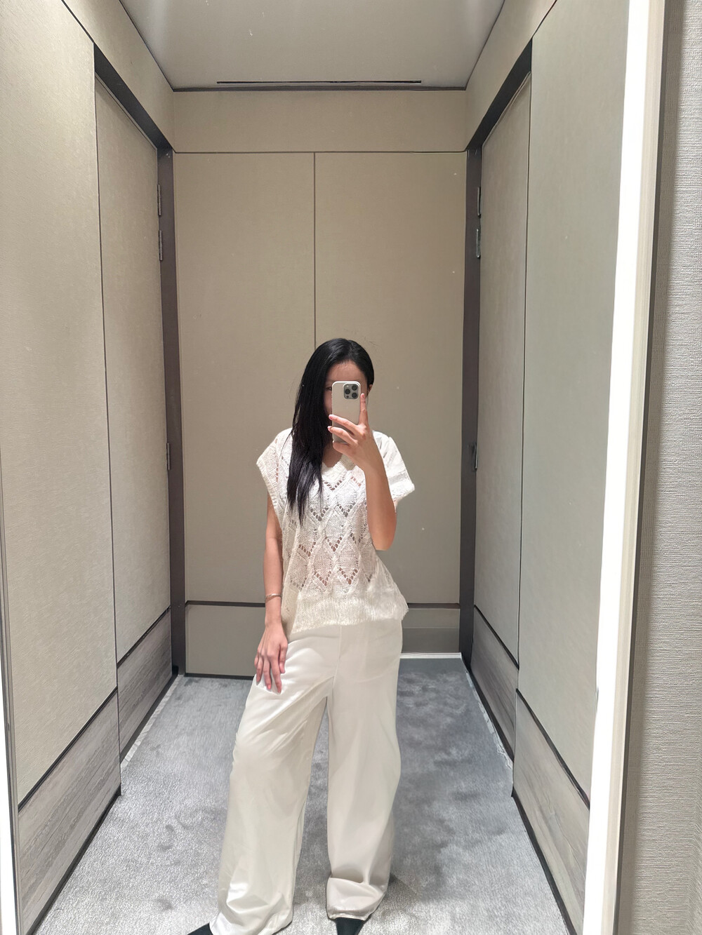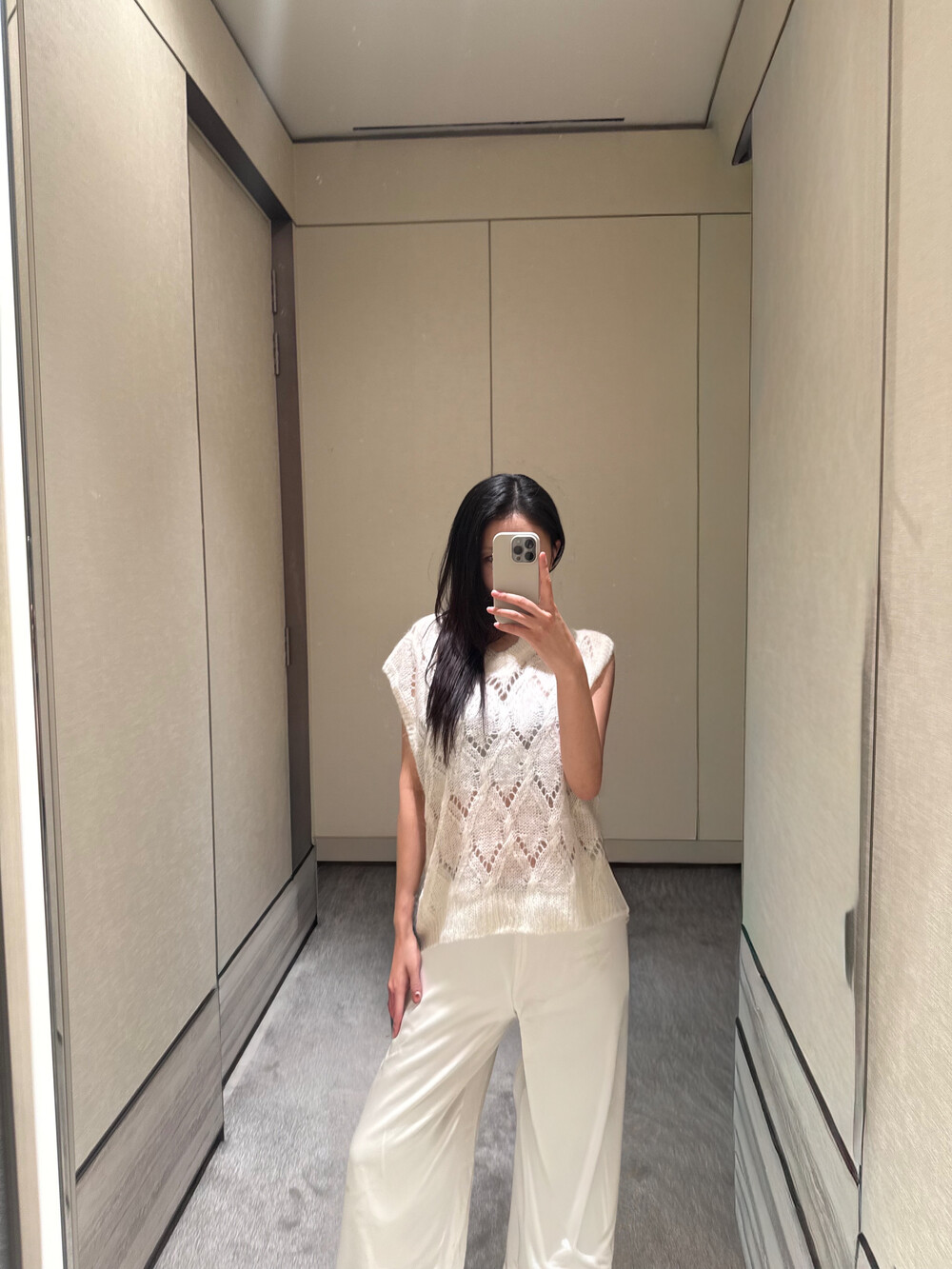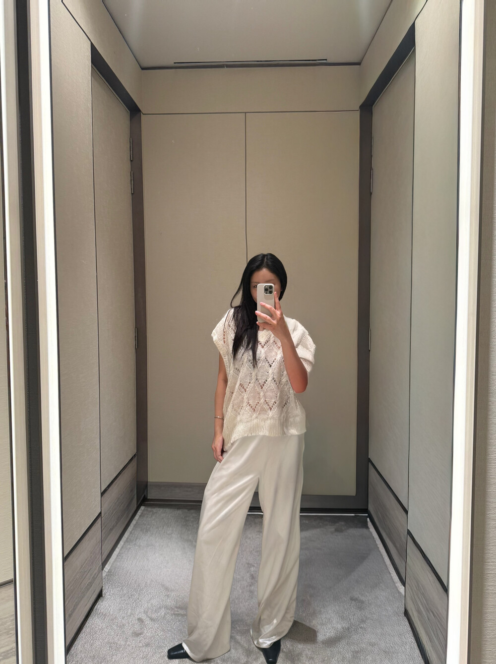 특히 화이트 컬러의 경우,사틴 팬츠에서 흔히 문제 되는 주머니 비침이나