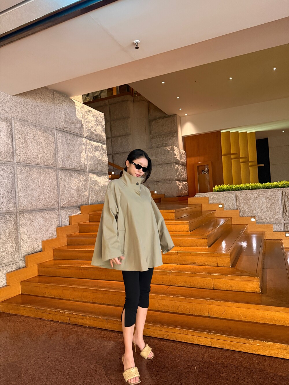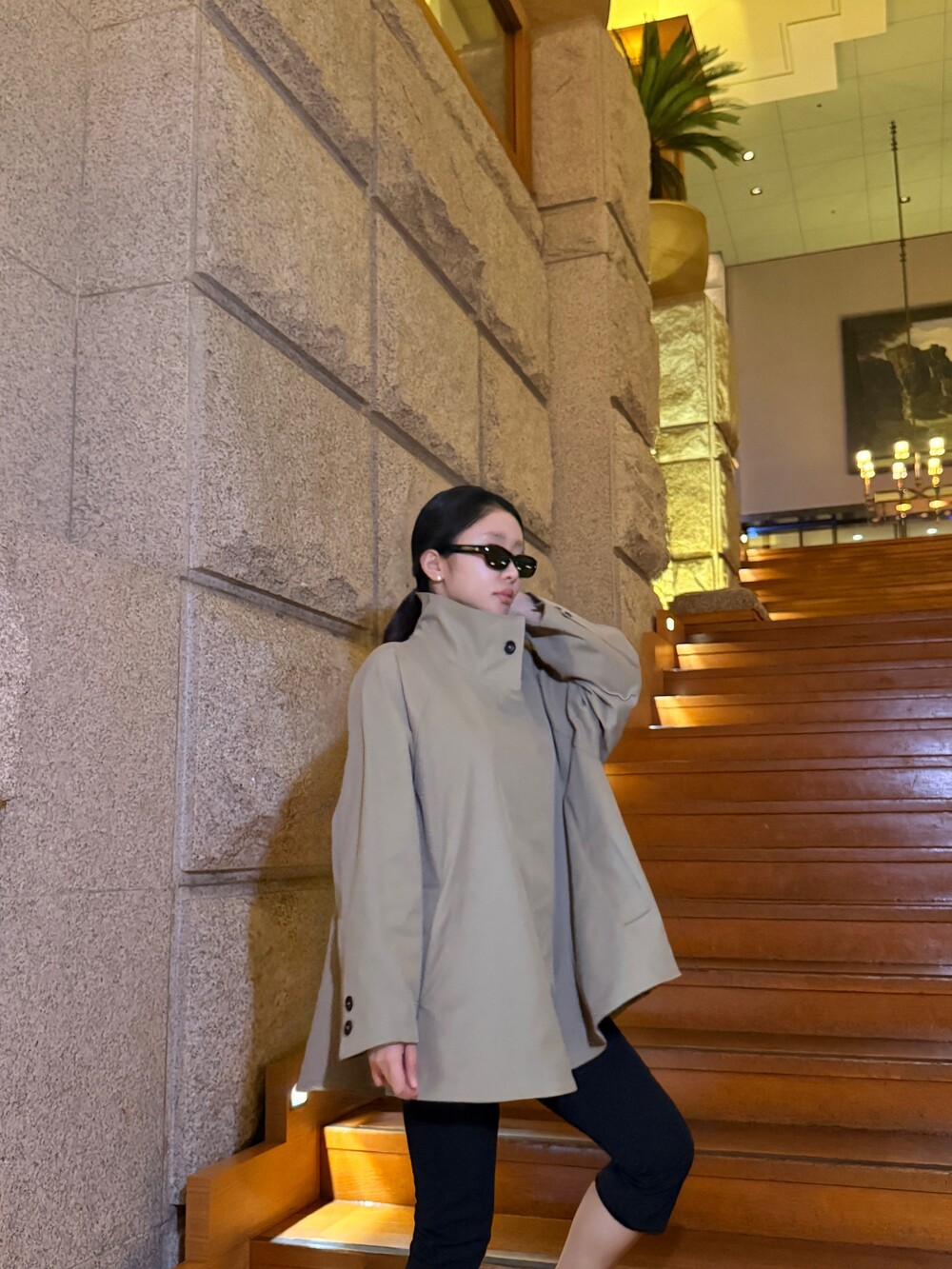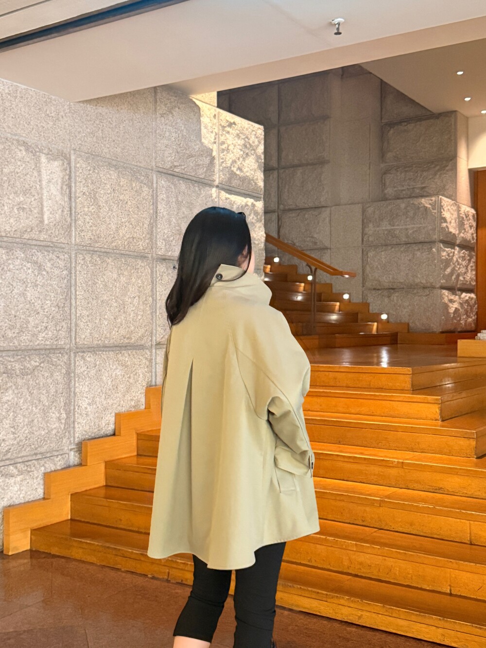 여성스러운 케이프 스타일의 실루엣과 뒷면의 단정한 하이넥 디자인을 동시에 담은 제품으로,