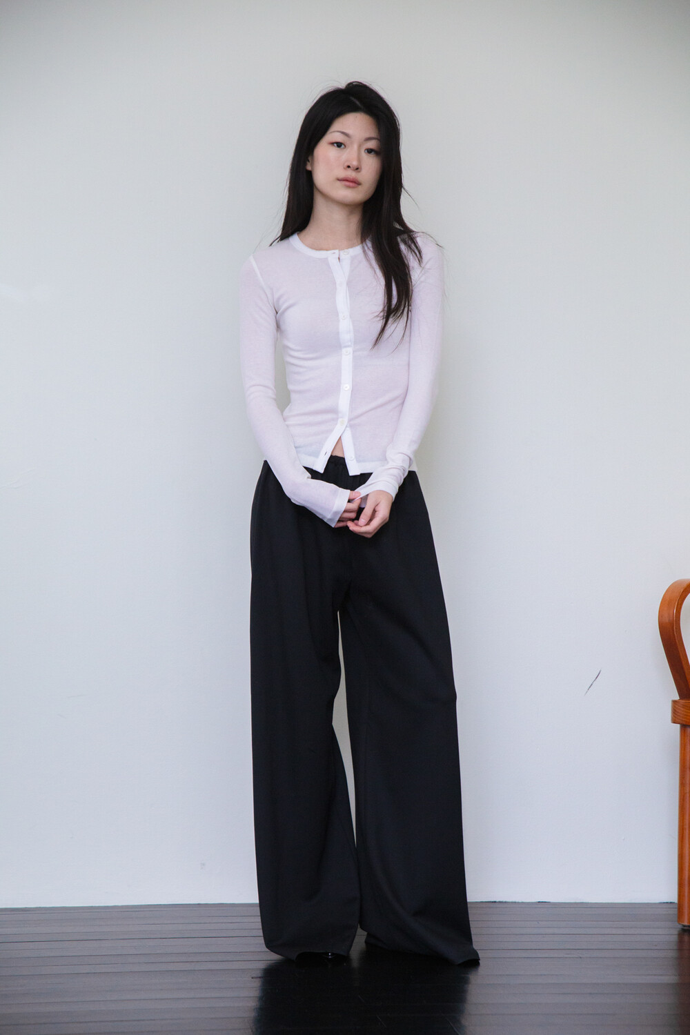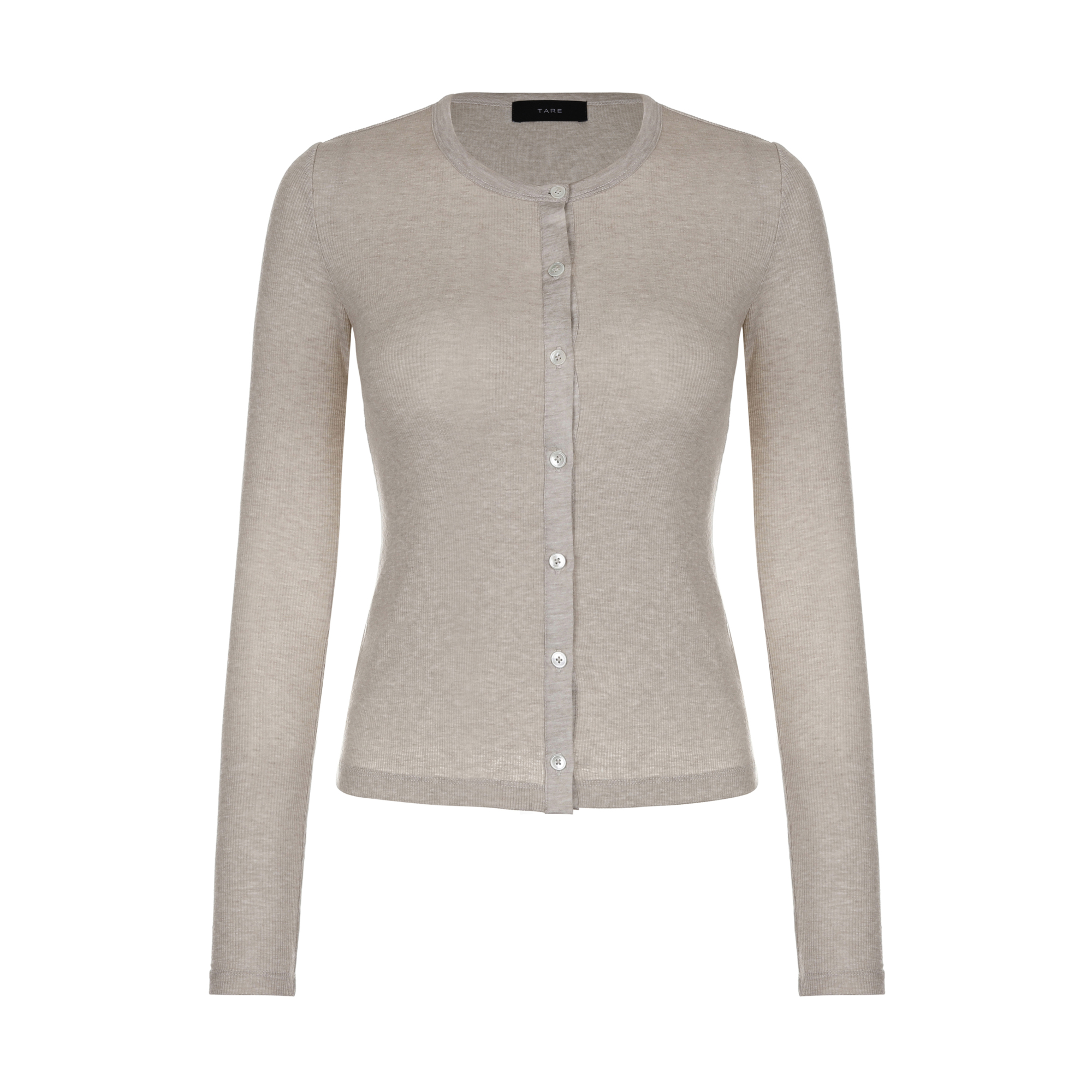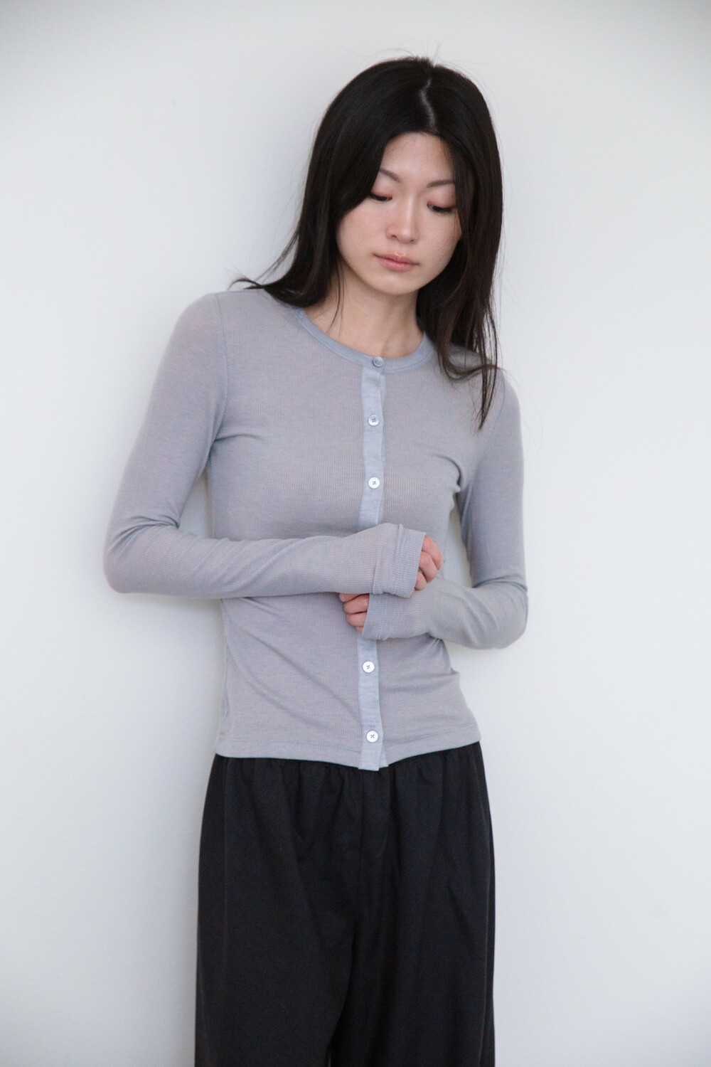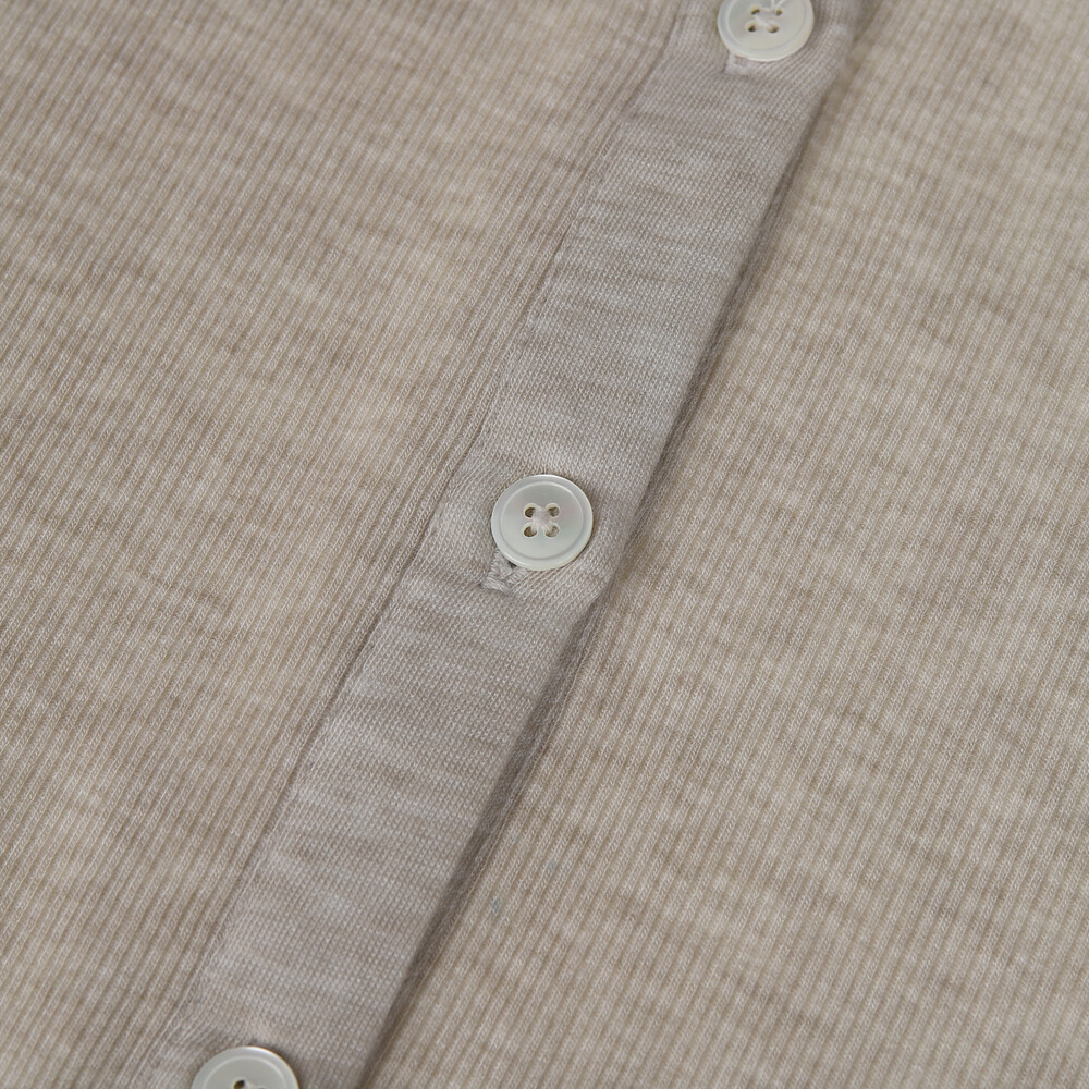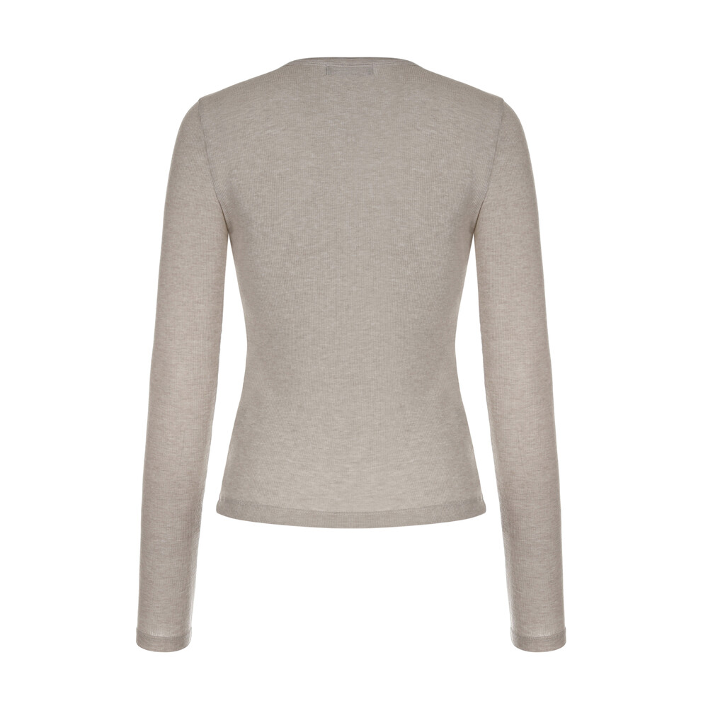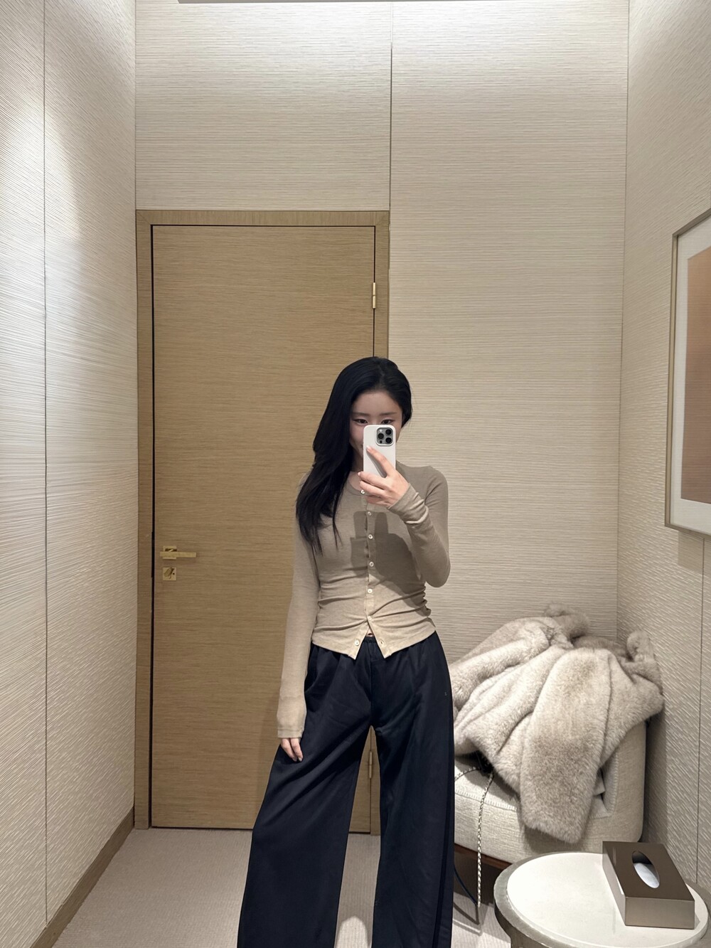테어의 시그니처 감성과 뉴트럴 무드를 담아낸 Wool Tencel Ribbed Button Top은