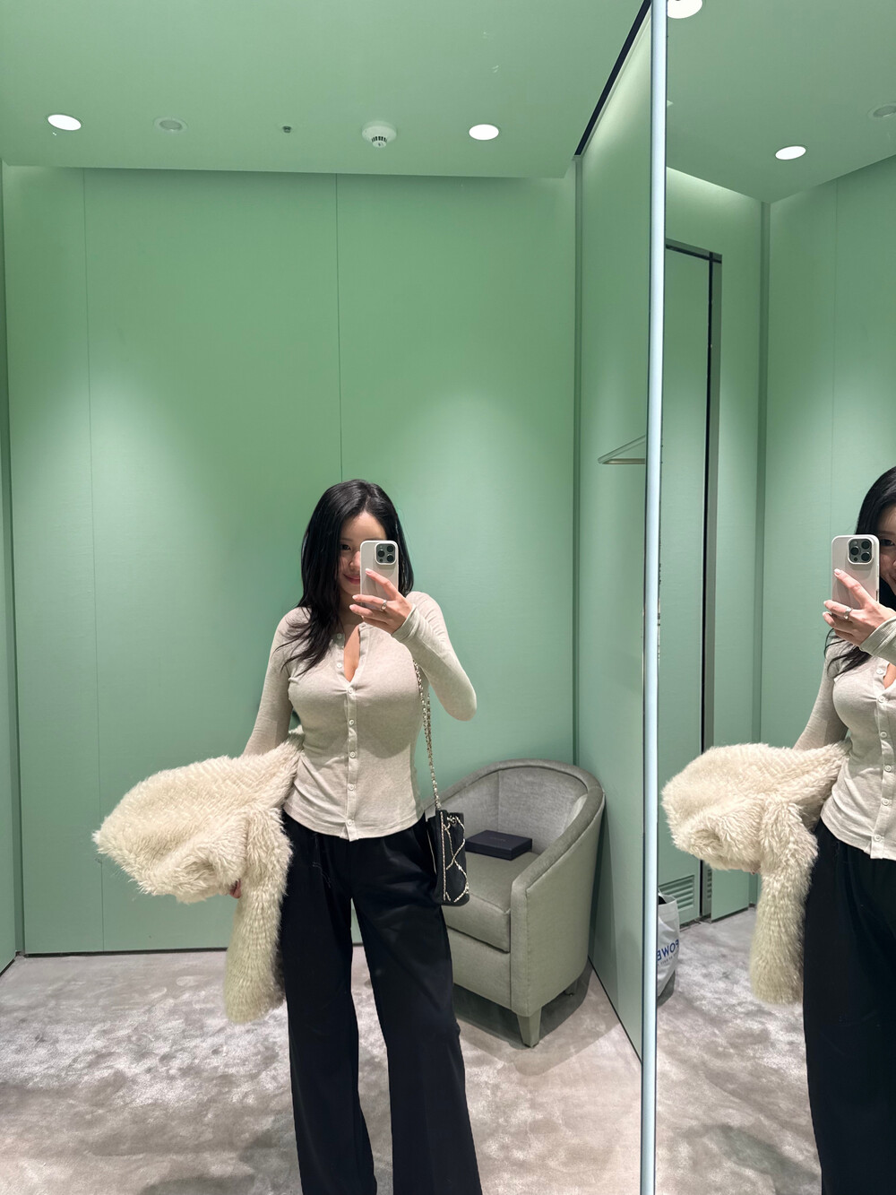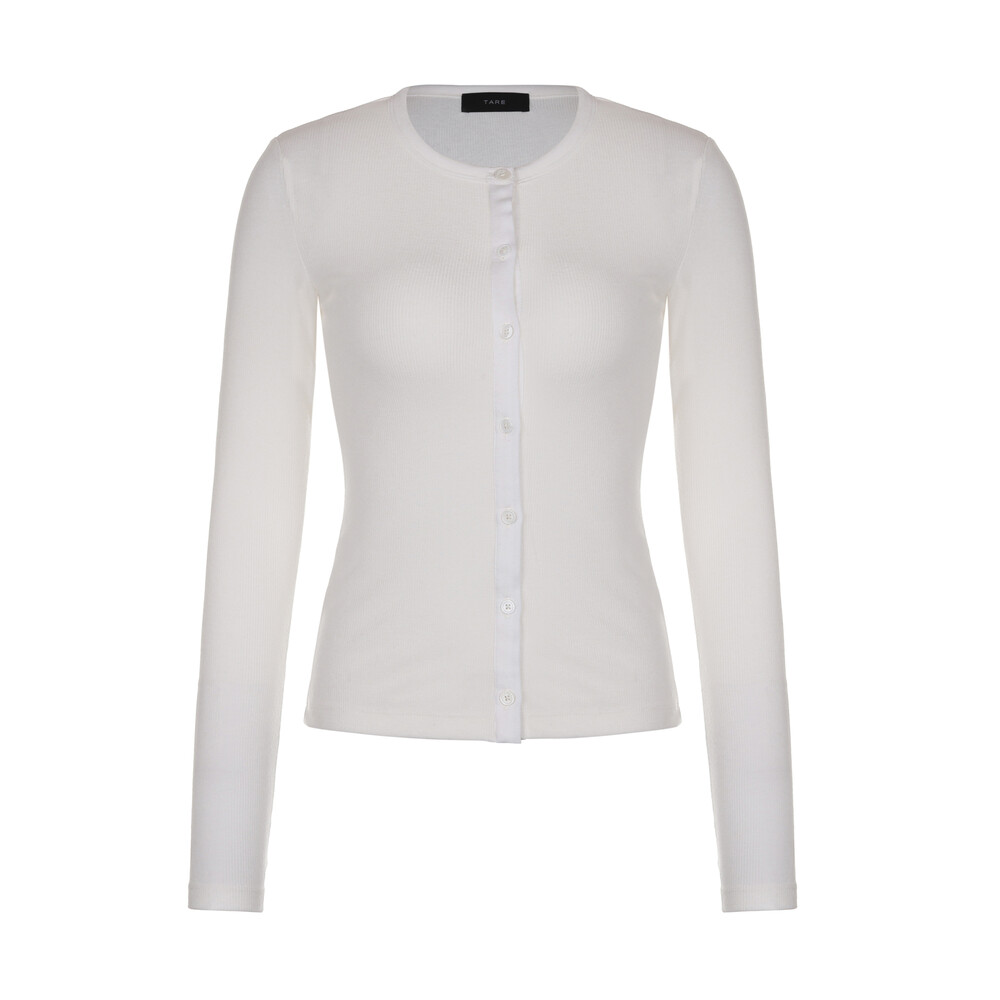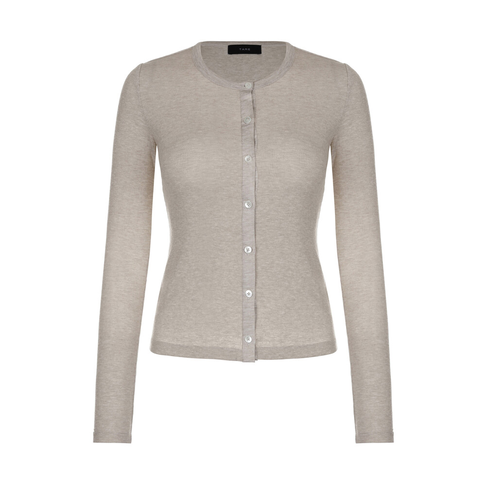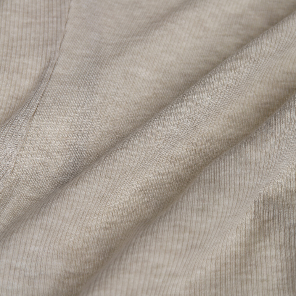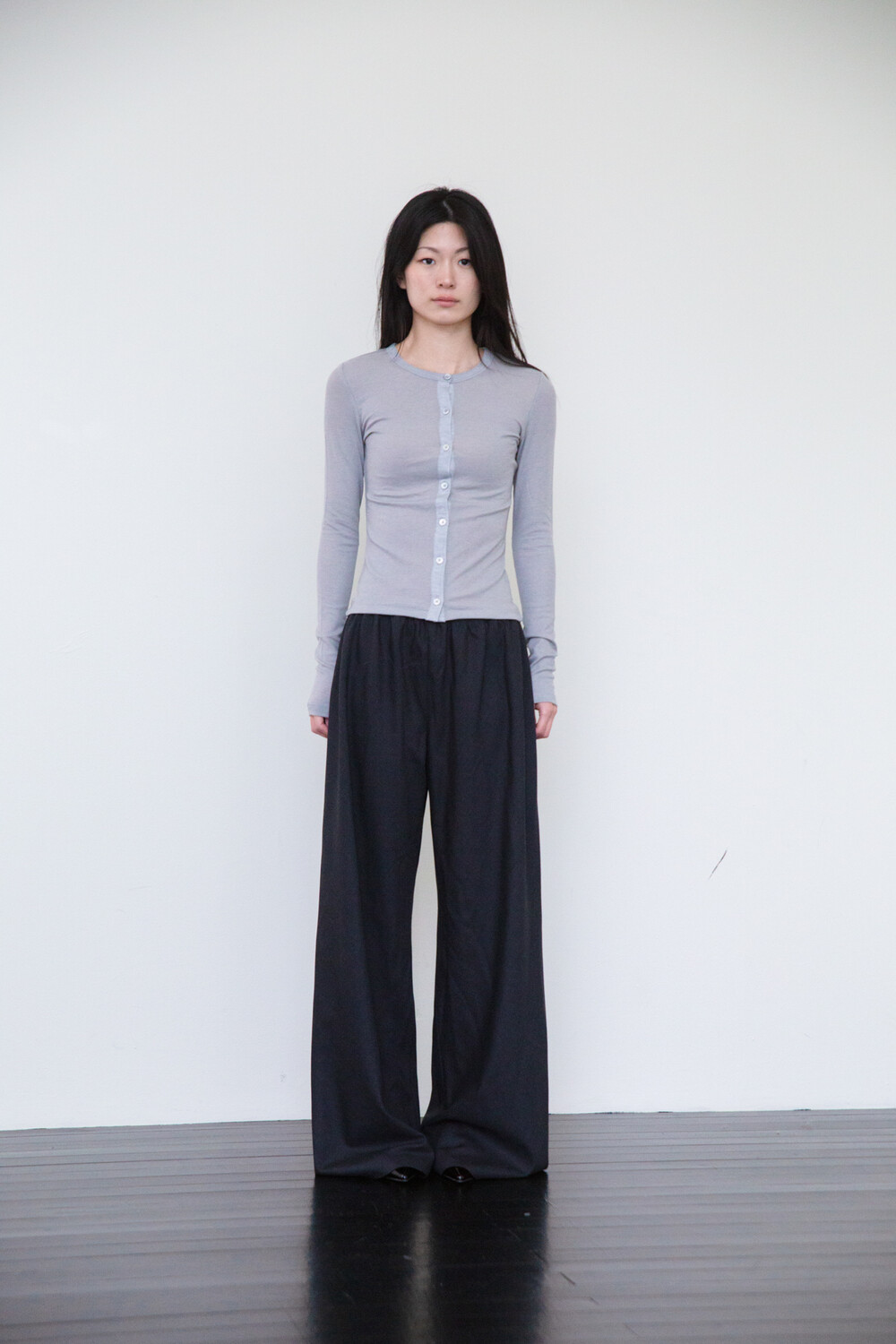 테어의 시그니처 감성과 뉴트럴 무드를 담아낸 Wool Tencel Ribbed Button Top은