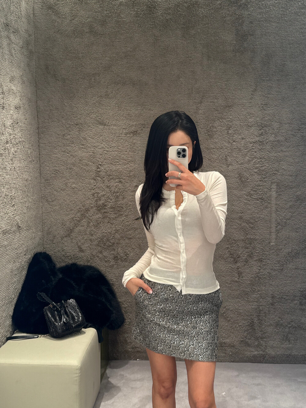 화이트 컬러의 경우 특성상 미세한 비침이 있을 수 있으므로본인의 피부 톤에 가장 자연스럽게 어우러지는 이너 착용을 권장드립니다.